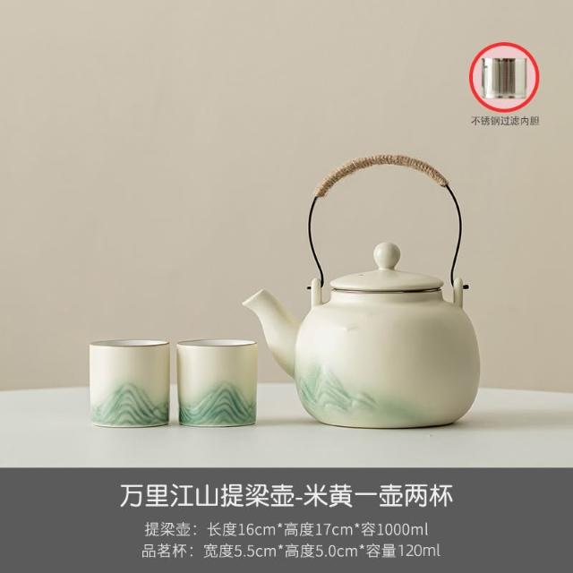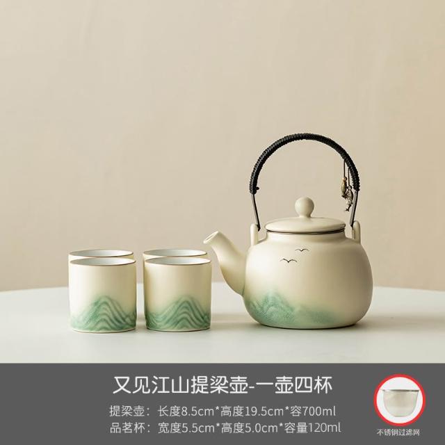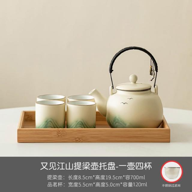小清新提梁壺功夫茶具套裝陶瓷家用中式現代簡約大號茶壺茶杯