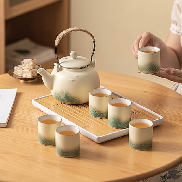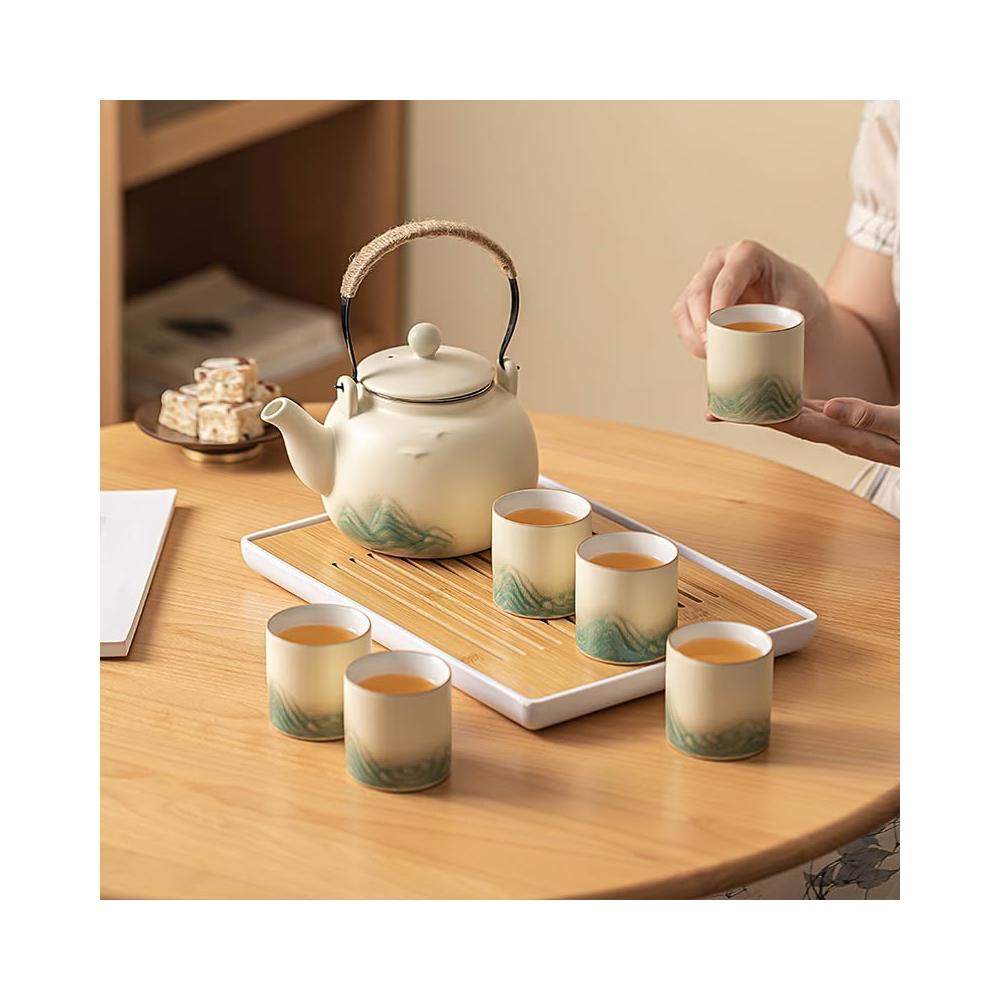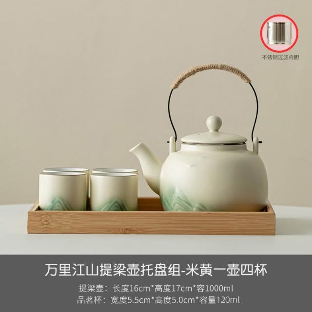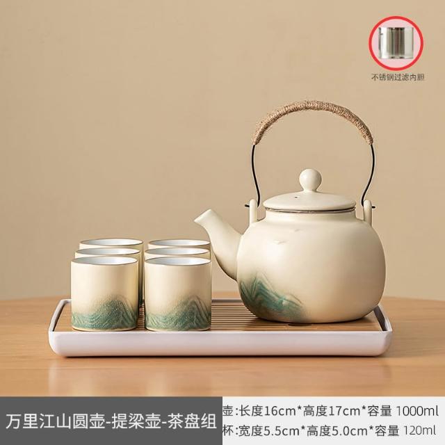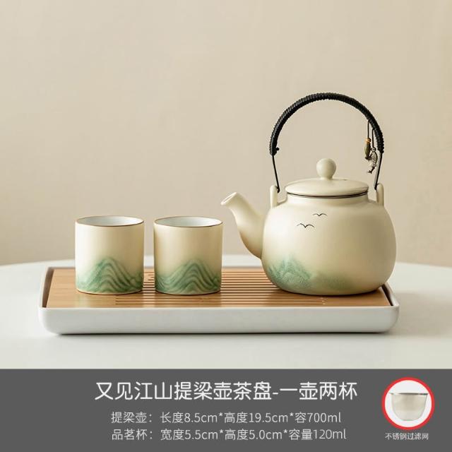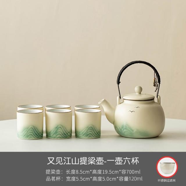 小清新提梁壺功夫茶具套裝陶瓷家用中式現代簡約大號茶壺茶杯