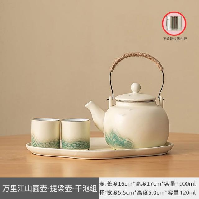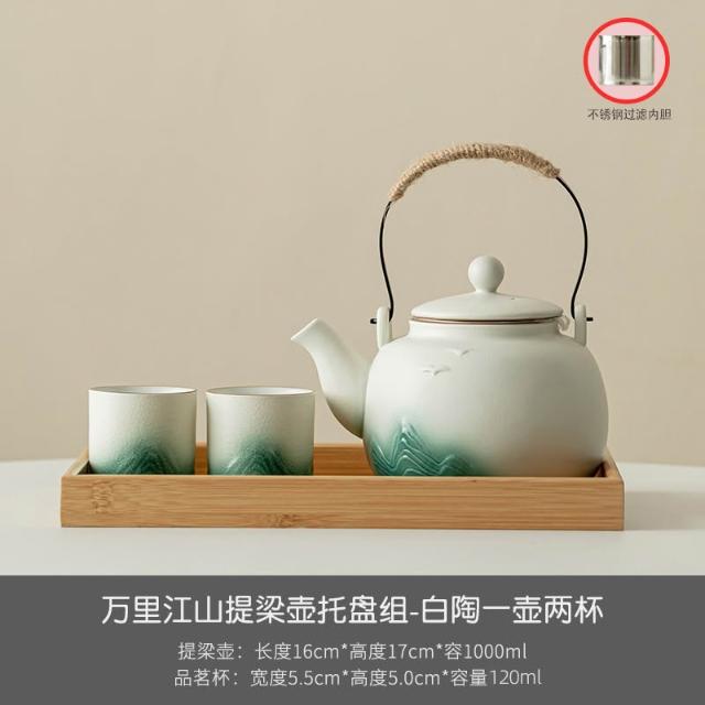小清新提梁壺功夫茶具套裝陶瓷家用中式現代簡約大號茶壺茶杯