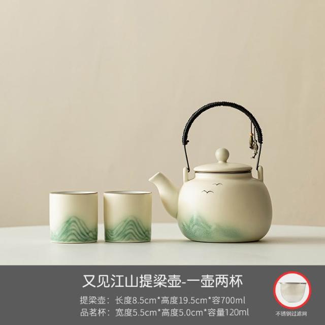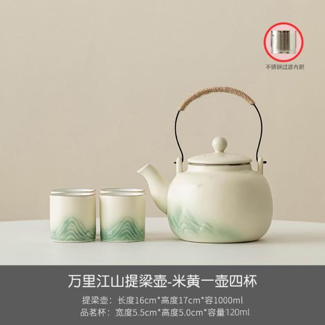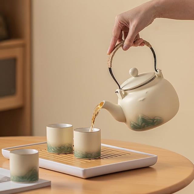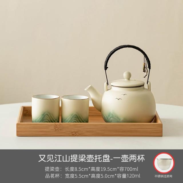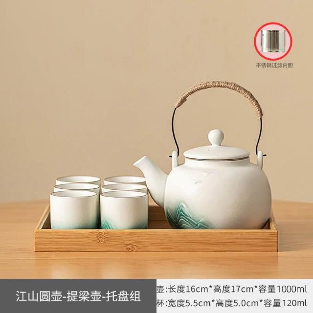 小清新提梁壺功夫茶具套裝陶瓷家用中式現代簡約大號茶壺茶杯