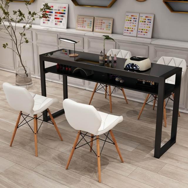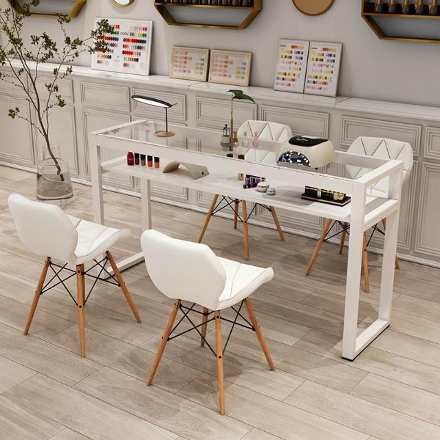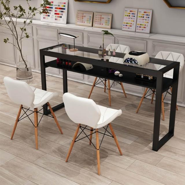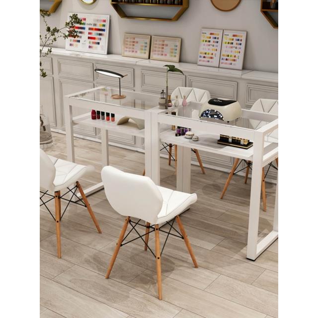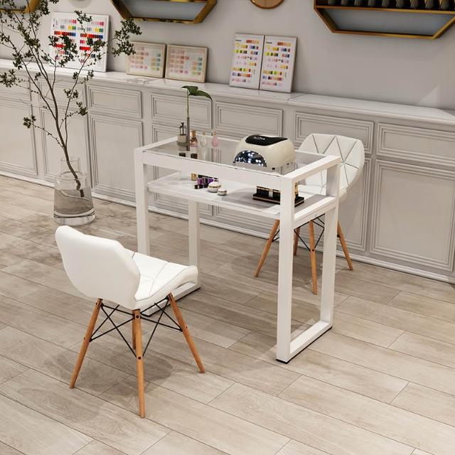美甲桌椅套裝鋼化玻璃時尚網紅美甲工作臺新款日式單雙人美甲桌子