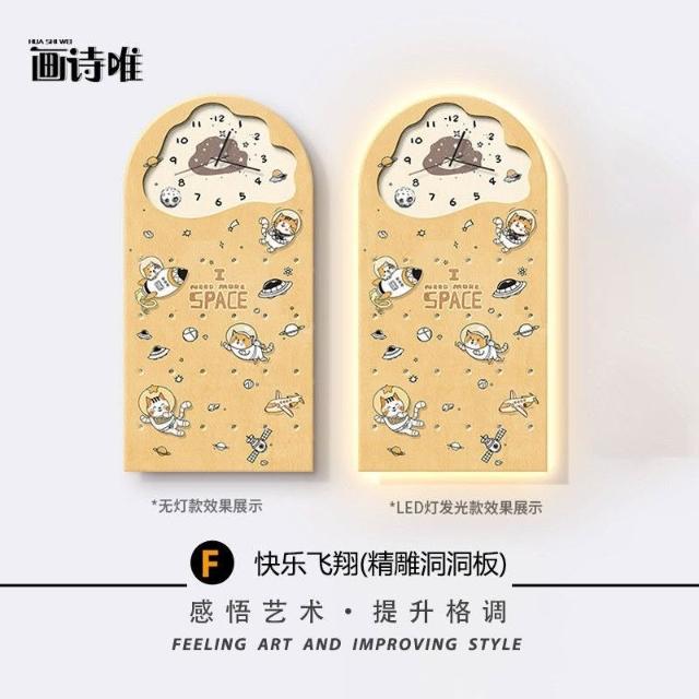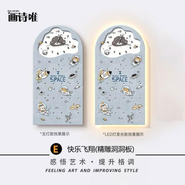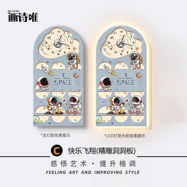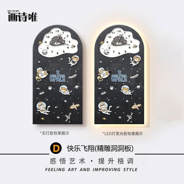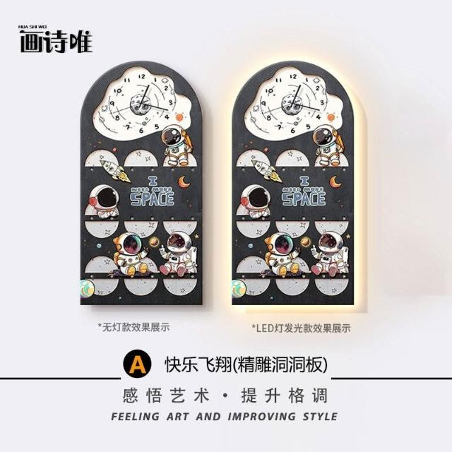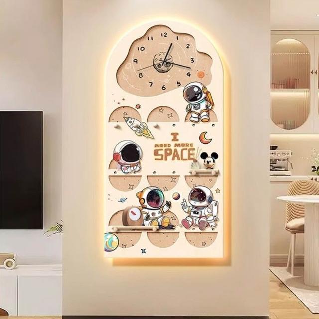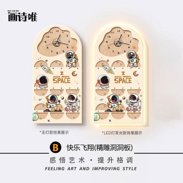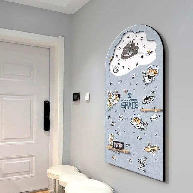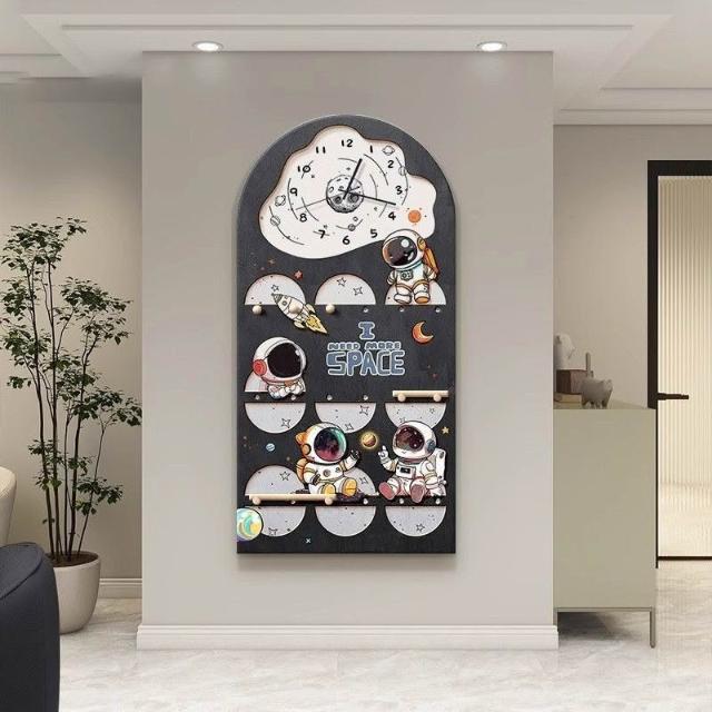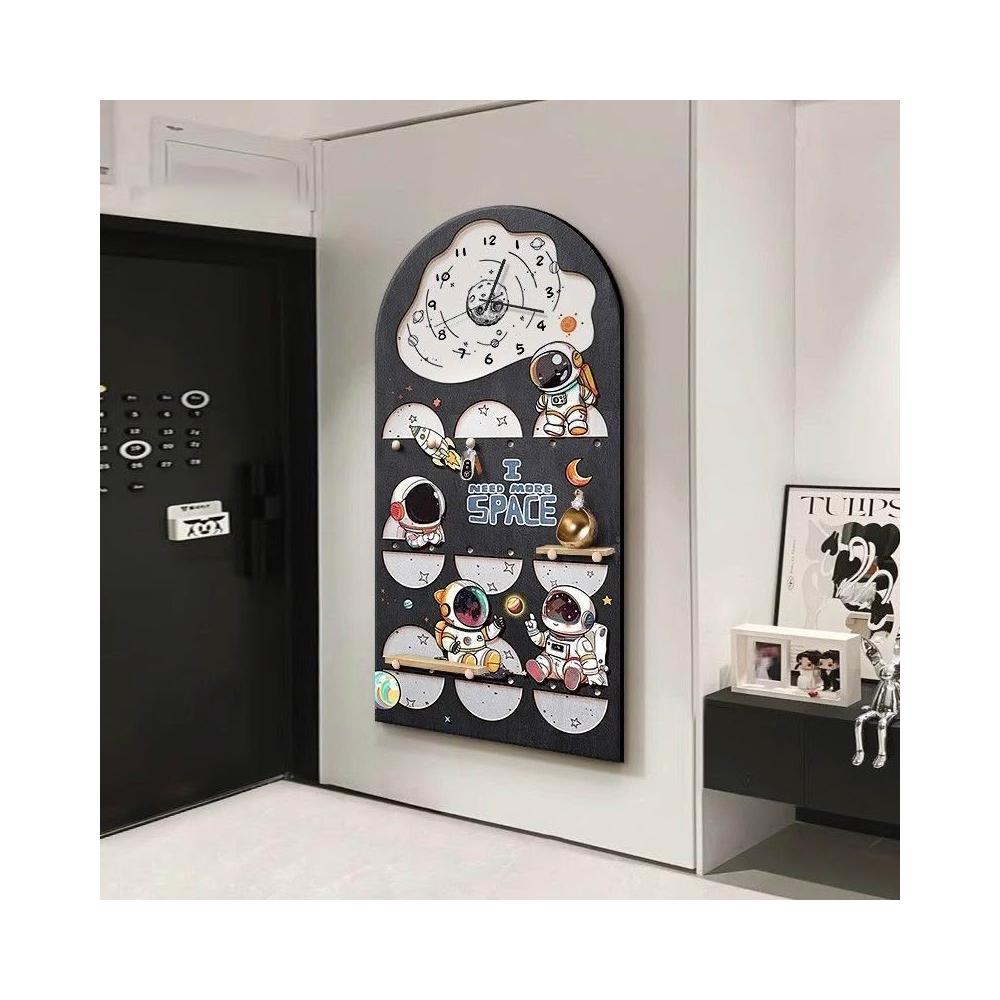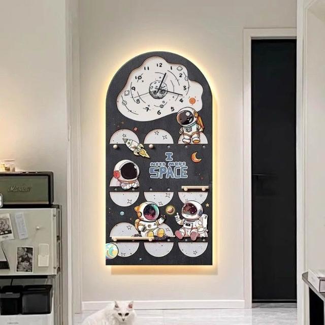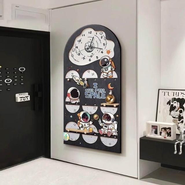 宇航員創意洞洞闆裝飾畵客廳沙髮掛鍾壁畵現代入戶玄關置物架掛畵