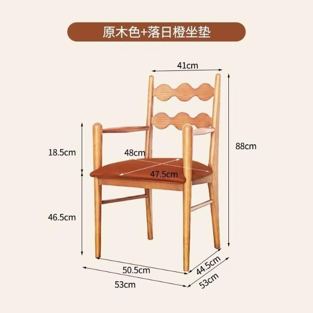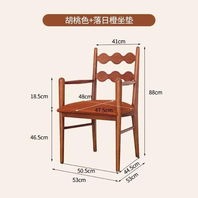 法式簡約家用中古餐椅北歐椅子實木輕奢複古設計師休閒靠背靠00