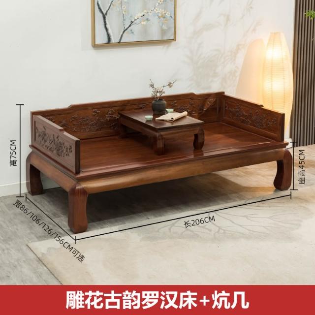 新中式三件套羅漢床實木小戶型羅漢榻床榻簡約現代沙發床金絲黃檀