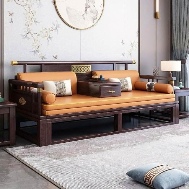 新中式羅漢床國風古典禪意烏金木沙發拉床現代簡約辦公室客廳兩用