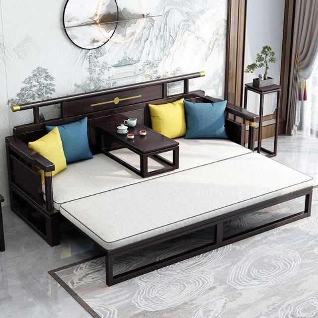 新中式羅漢床國風古典禪意烏金木沙發拉床現代簡約辦公室客廳兩用