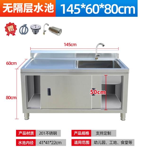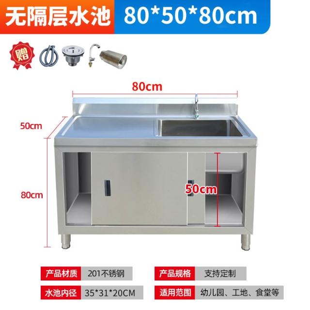 不銹鋼拉門工作臺水槽一體灶台櫃帶水池平臺洗菜商用家用廚房櫥櫃