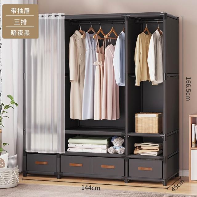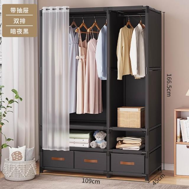 簡易衣櫃家用臥室小戶型現代簡約衣帽架用鋼管加粗防塵組裝收納櫃