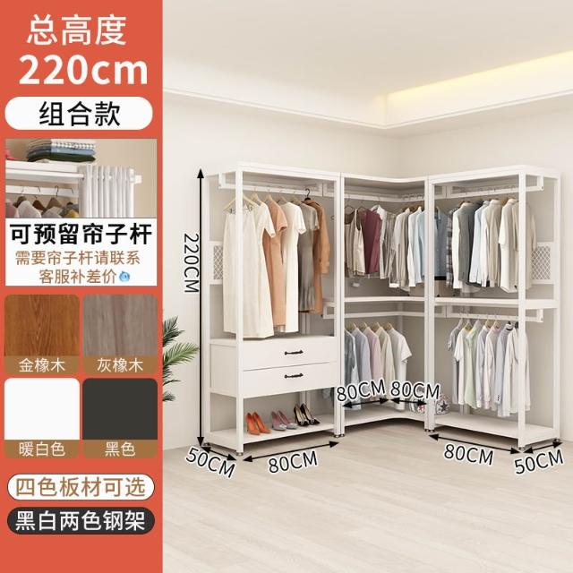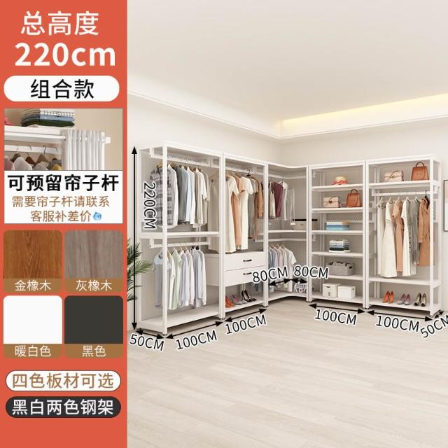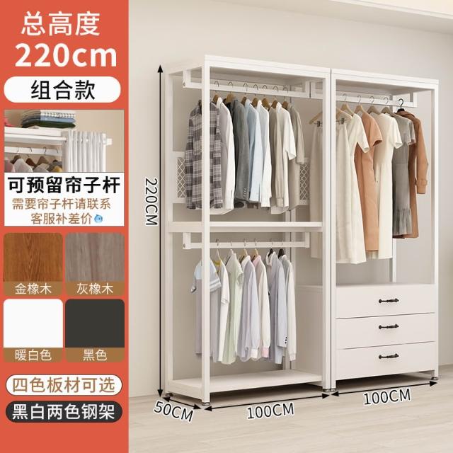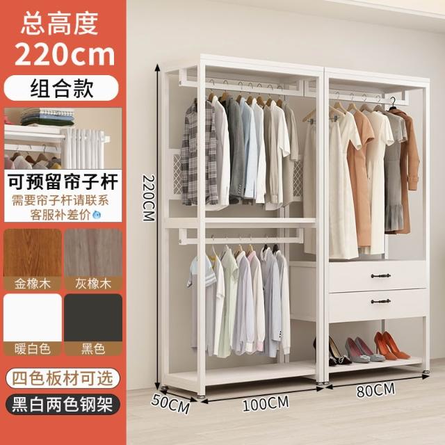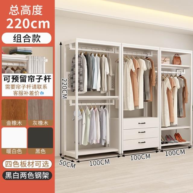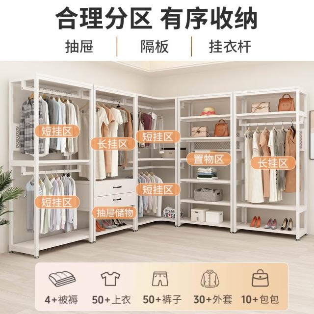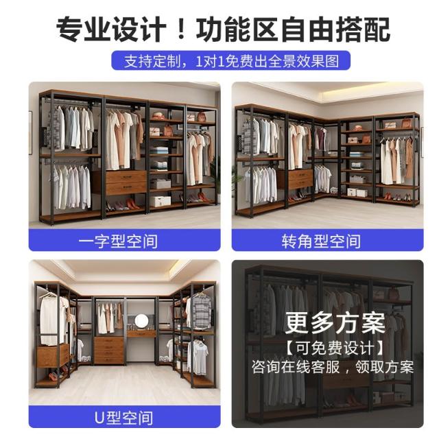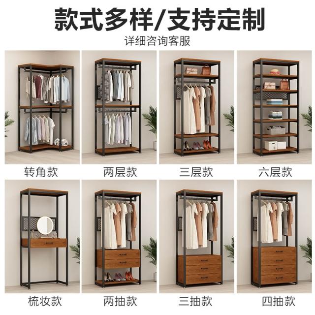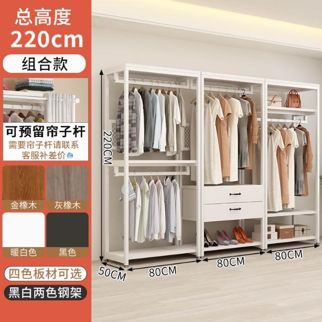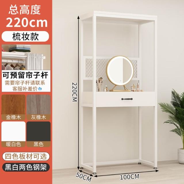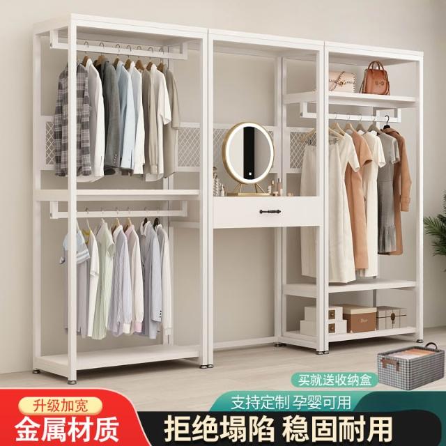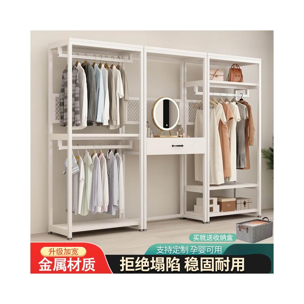 開放式衣櫃家用臥室帶梳粧檯一體收納步入式衣帽間組合落地掛衣架