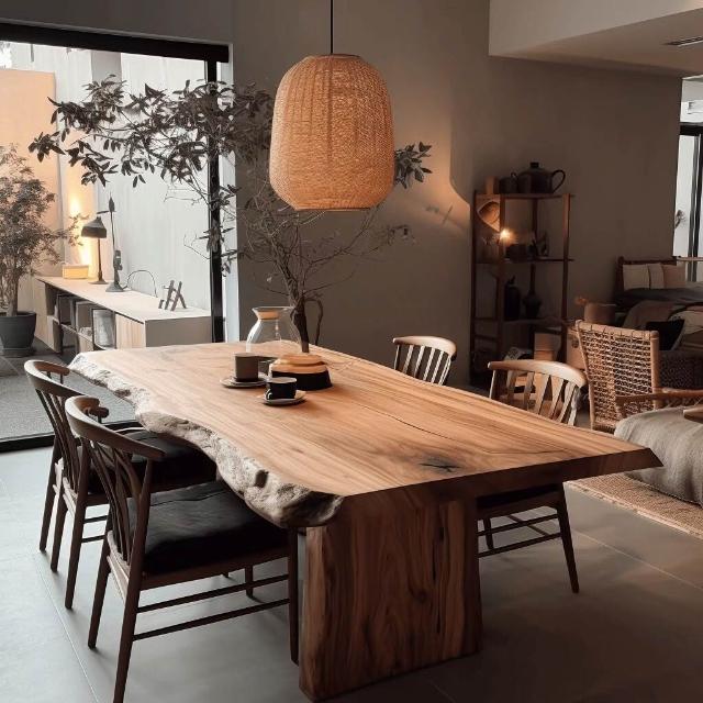 全實木會議桌長桌原木大板泡茶桌茶臺美式侘寂風餐桌長條桌洽談桌