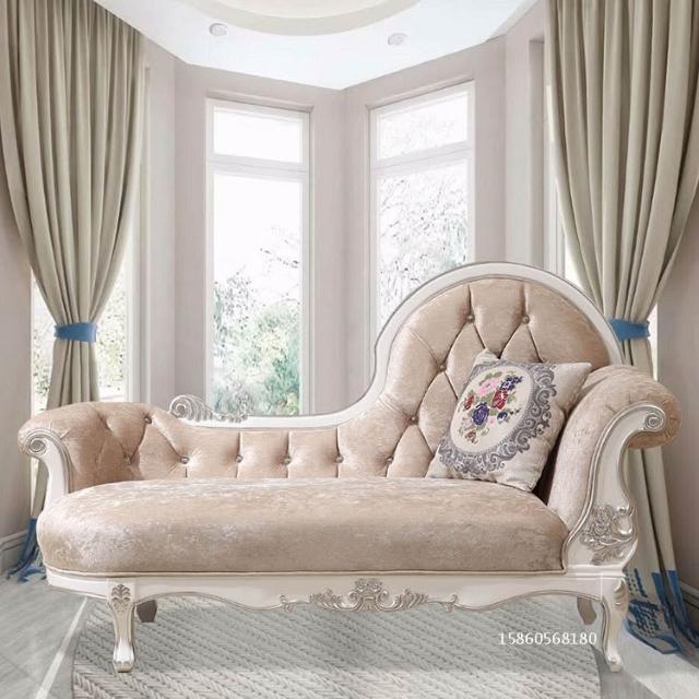 歐式貴妃椅實木躺椅新古典客廳太妃椅沙發美式臥室布藝美人榻