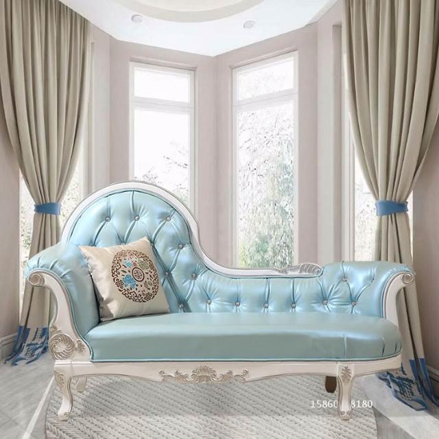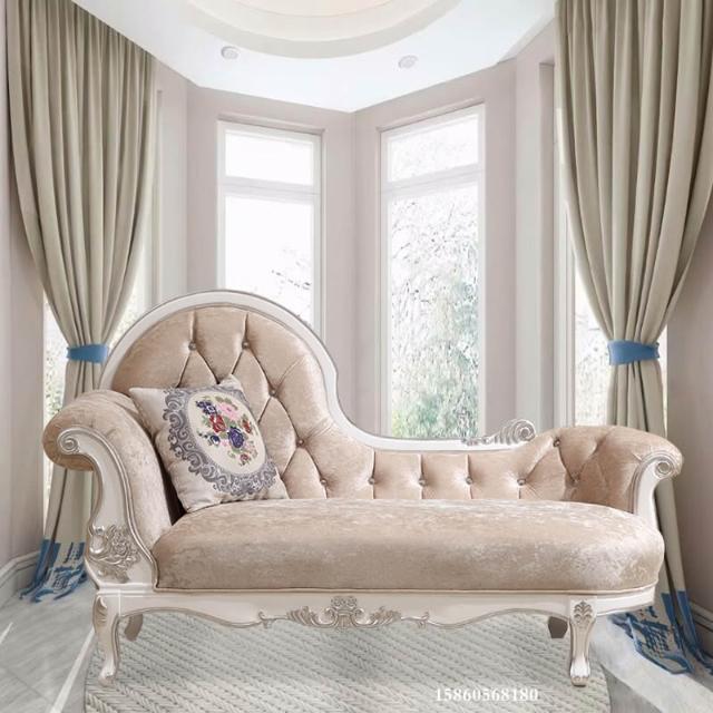 歐式貴妃椅實木躺椅新古典客廳太妃椅沙發美式臥室布藝美人榻