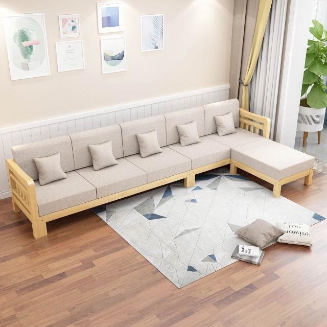 沙發床 懶人沙發 沙發 全實木沙發組閤實木頭木質沙發大小戶型三人雙人轉角客廳鬆木沙發
