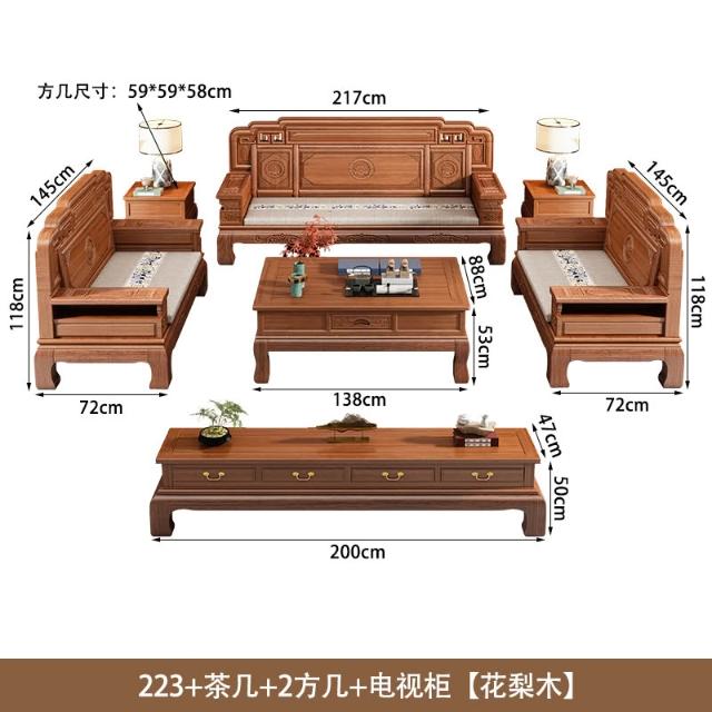 花梨木實木沙發組合中式古典雕花現代簡約冬夏兩用鳳梨格客廳傢俱