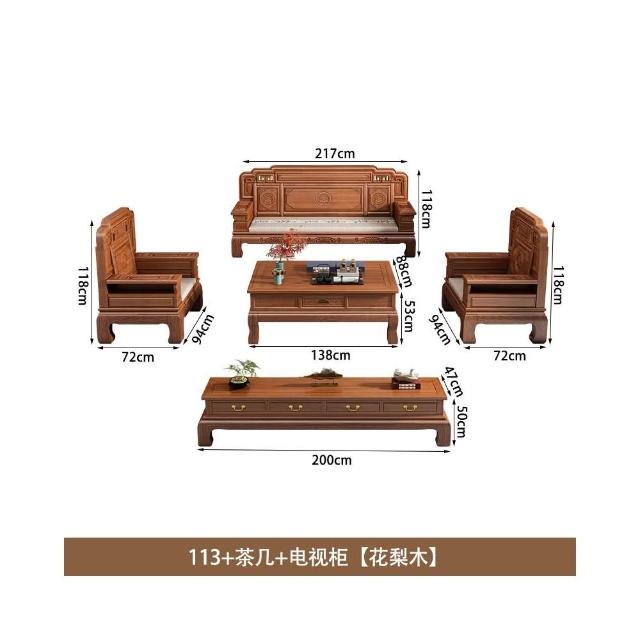 花梨木實木沙發組合中式古典雕花現代簡約冬夏兩用鳳梨格客廳傢俱