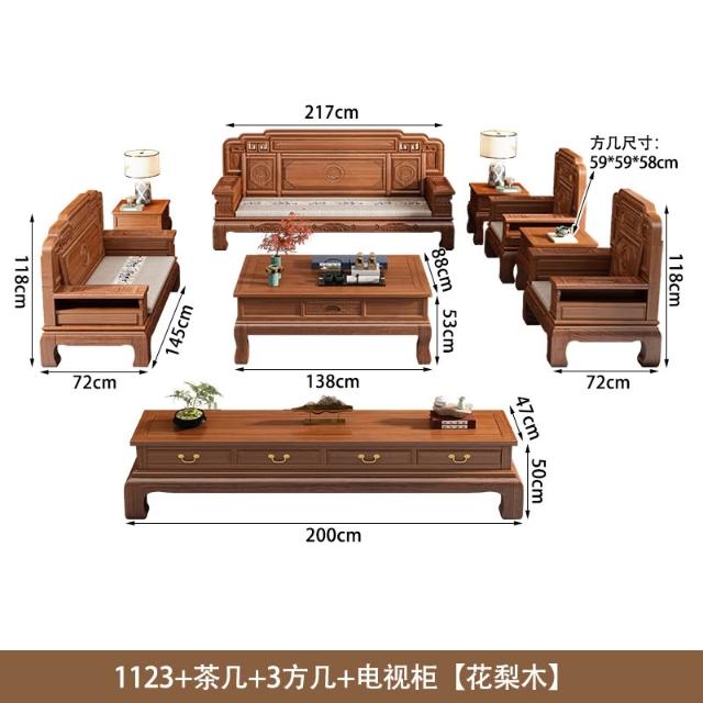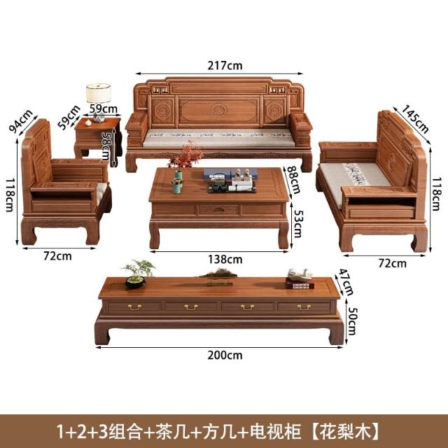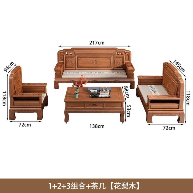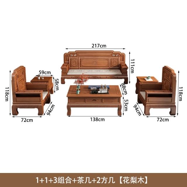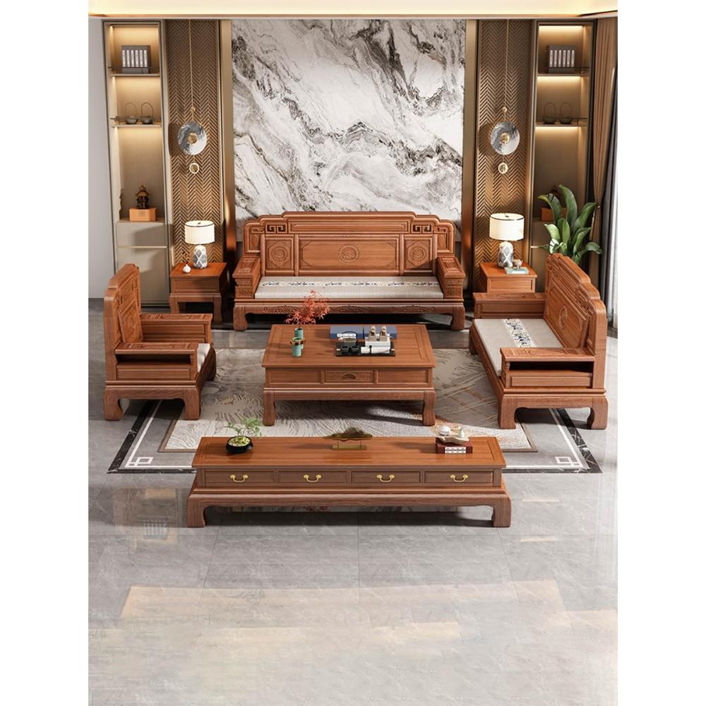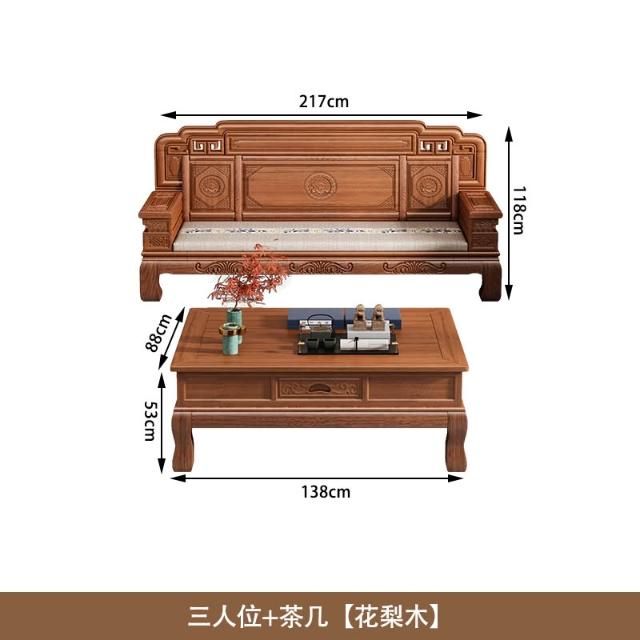 花梨木實木沙發組合中式古典雕花現代簡約冬夏兩用鳳梨格客廳傢俱