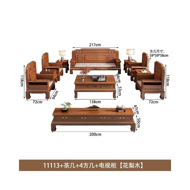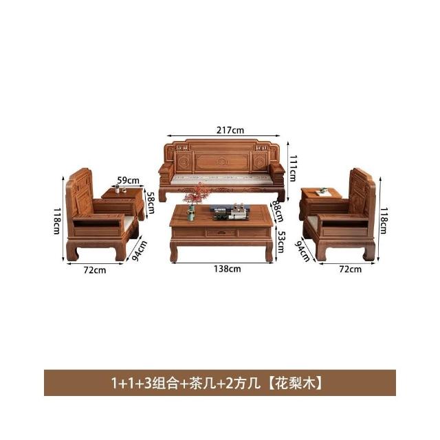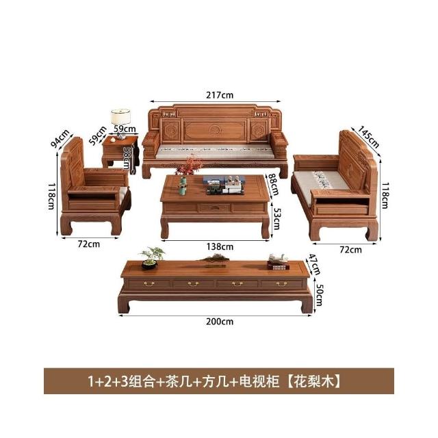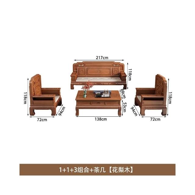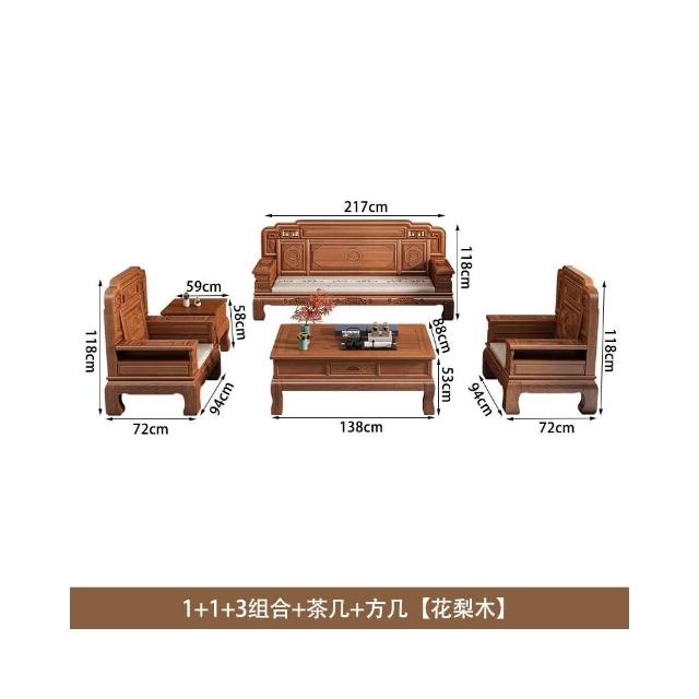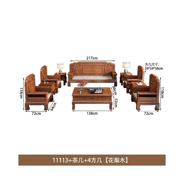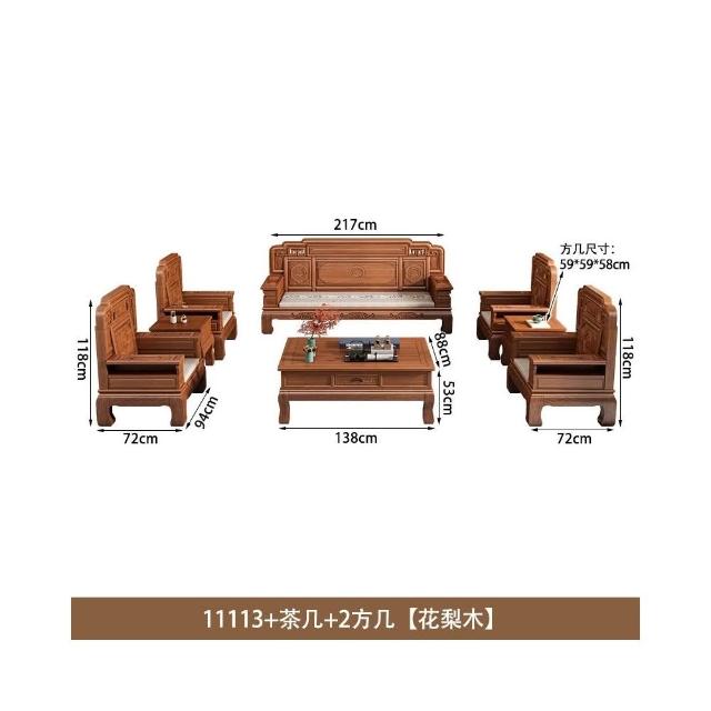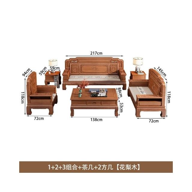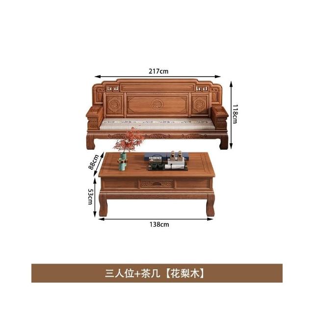 花梨木實木沙發組合中式古典雕花現代簡約冬夏兩用鳳梨格客廳傢俱
