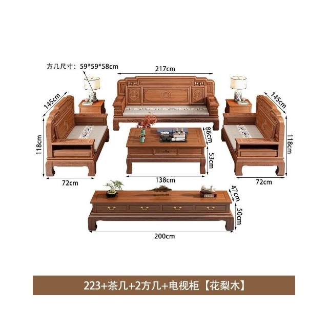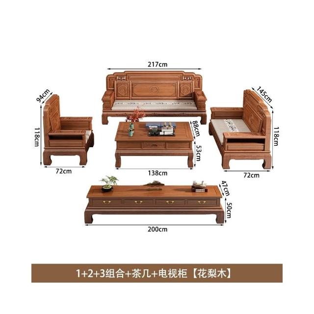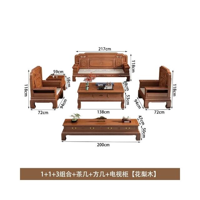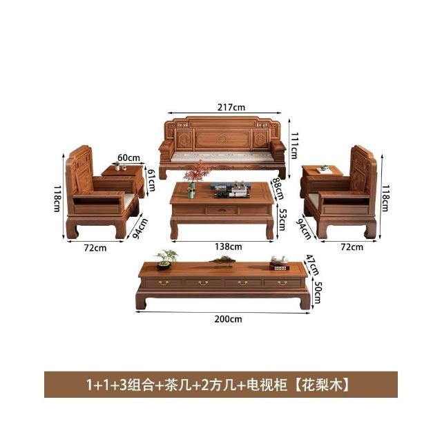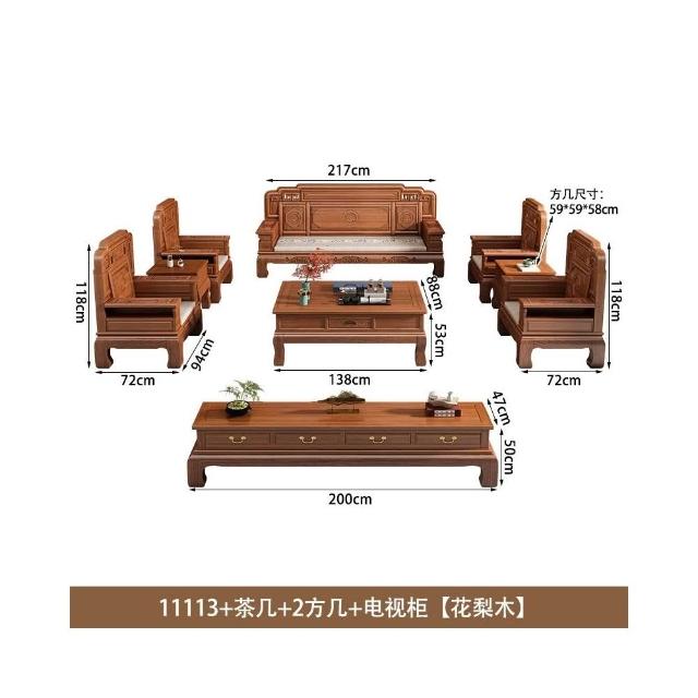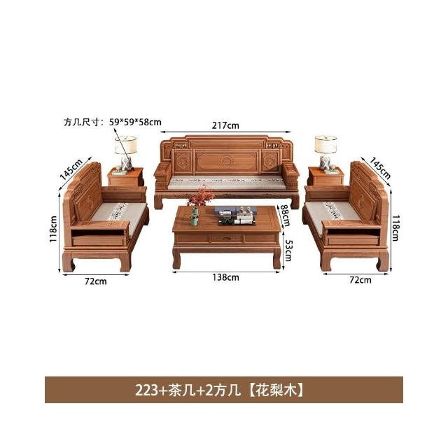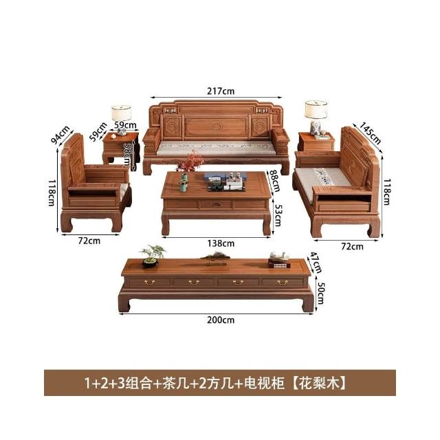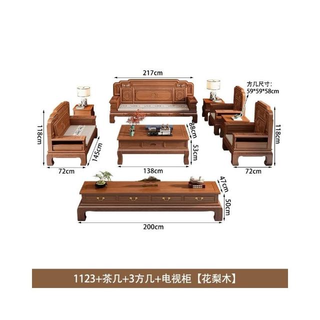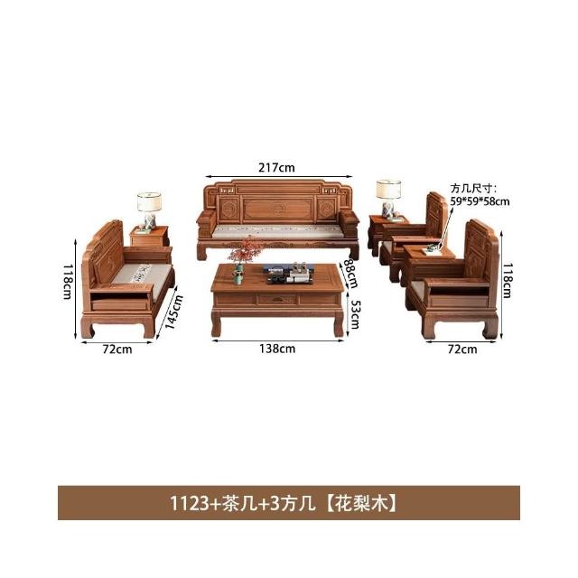 花梨木實木沙發組合中式古典雕花現代簡約冬夏兩用鳳梨格客廳傢俱