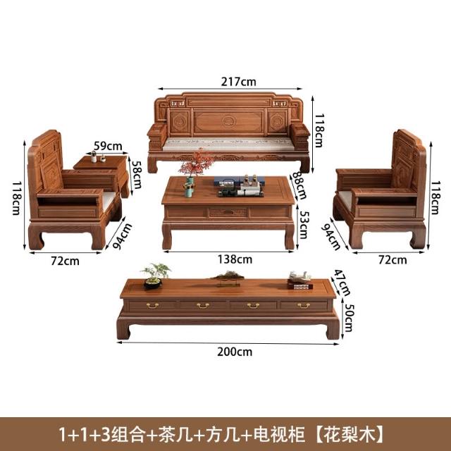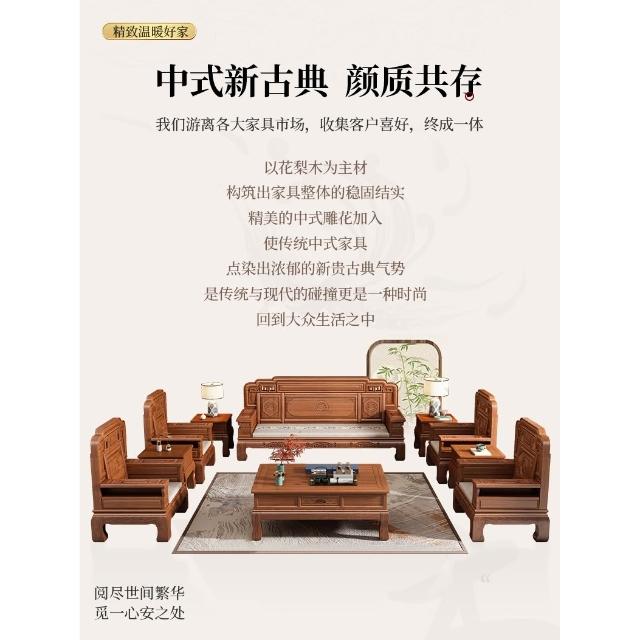 花梨木實木沙發組合中式古典雕花現代簡約冬夏兩用鳳梨格客廳傢俱