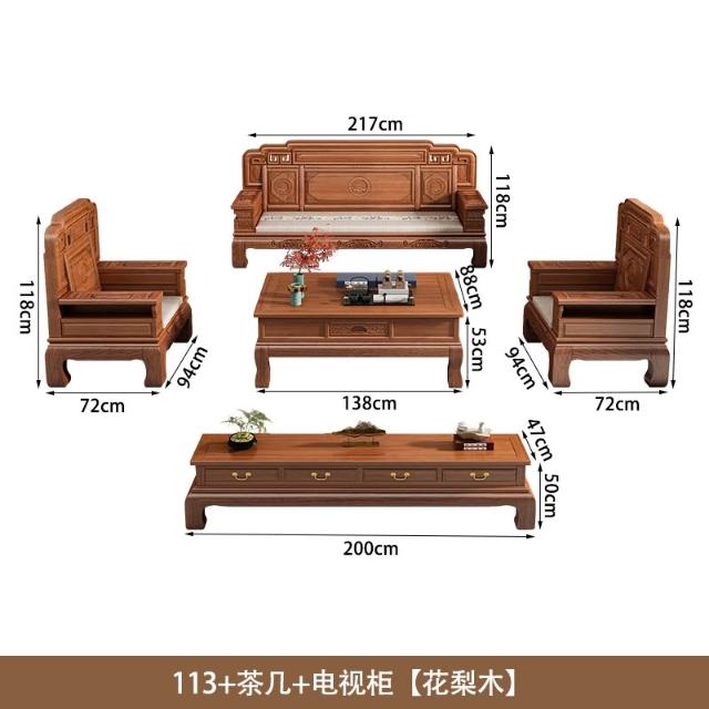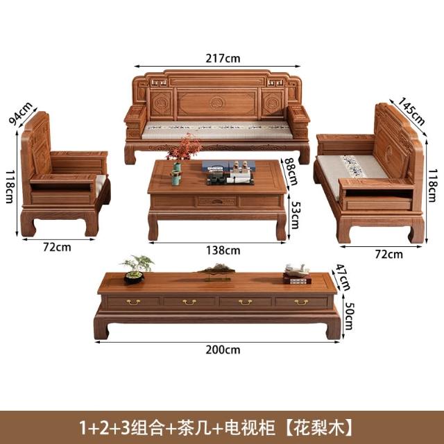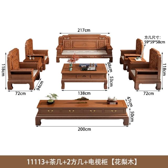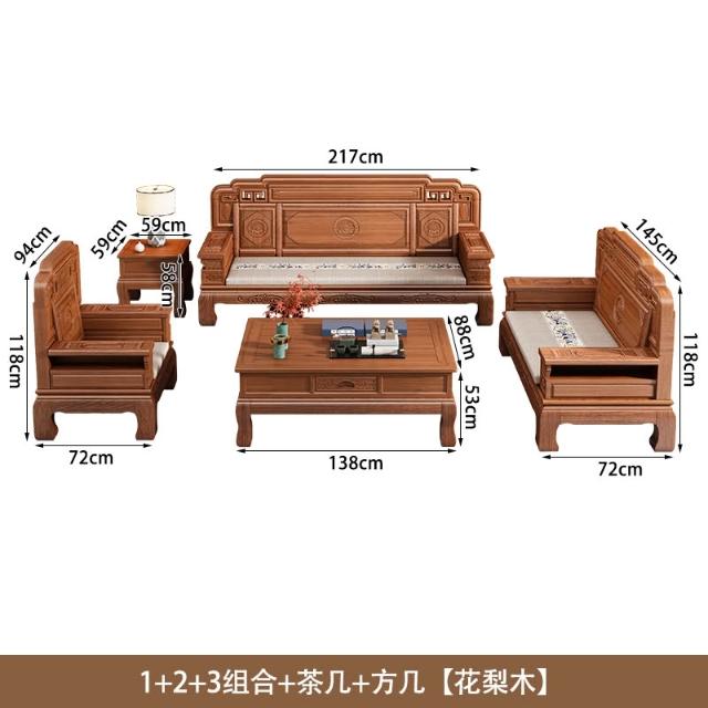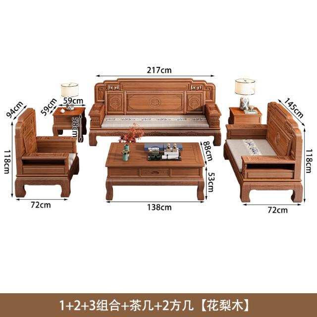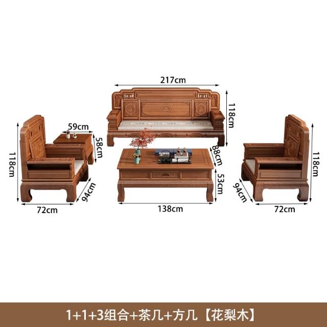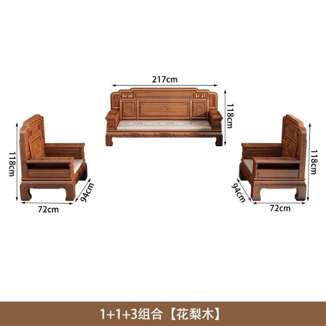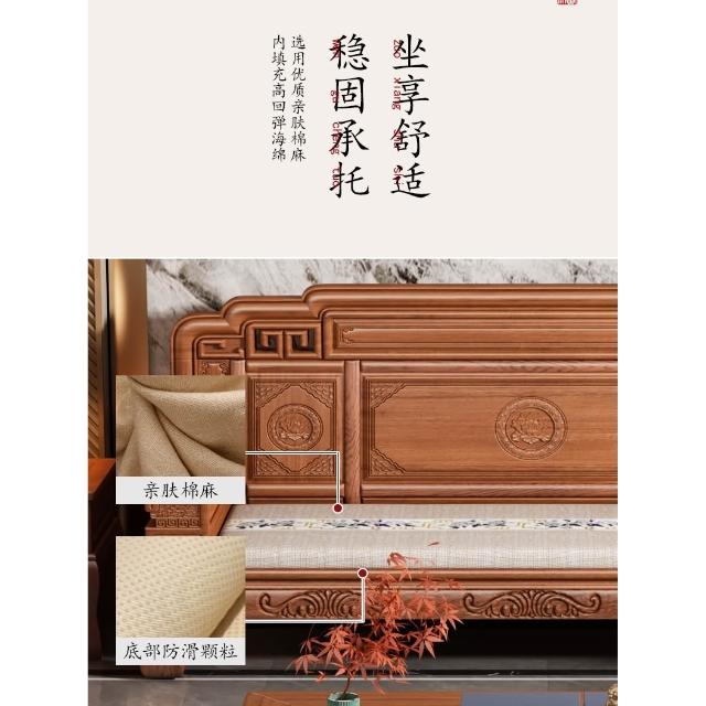 花梨木實木沙發組合中式古典雕花現代簡約冬夏兩用鳳梨格客廳傢俱