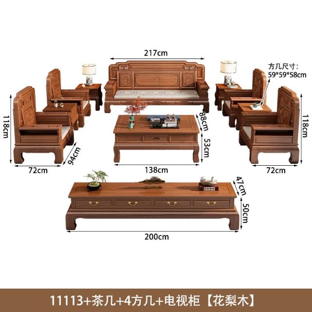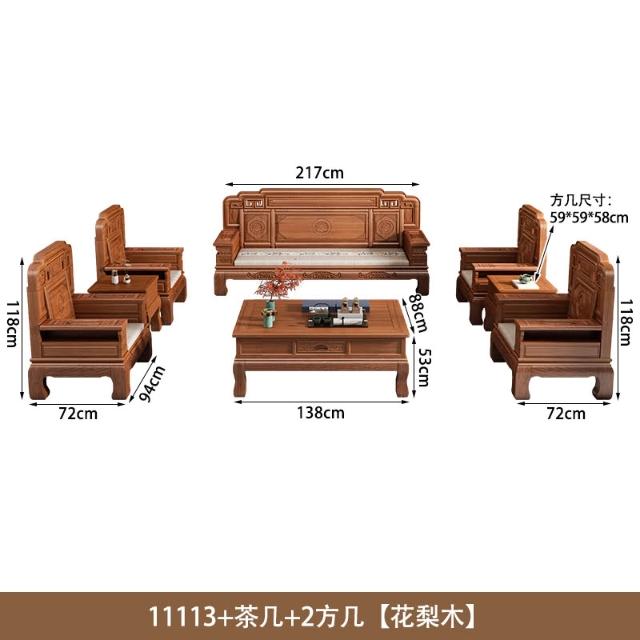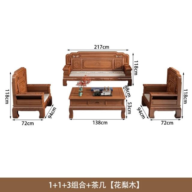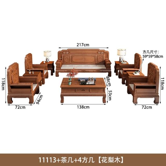 花梨木實木沙發組合中式古典雕花現代簡約冬夏兩用鳳梨格客廳傢俱