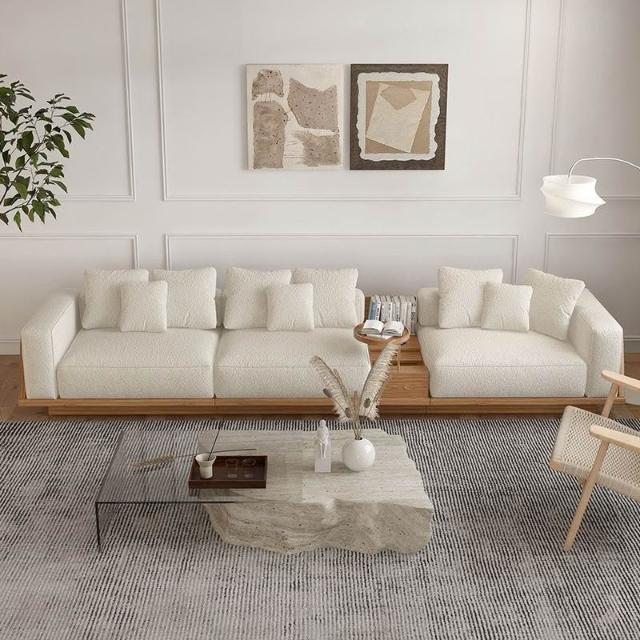 ✨開立發票✨ 日式简约小户型沙發 客厅直排沙發 雙扶手沙發 现代地台沙發 多人位沙發 布艺羊羔绒沙發 实木沙发