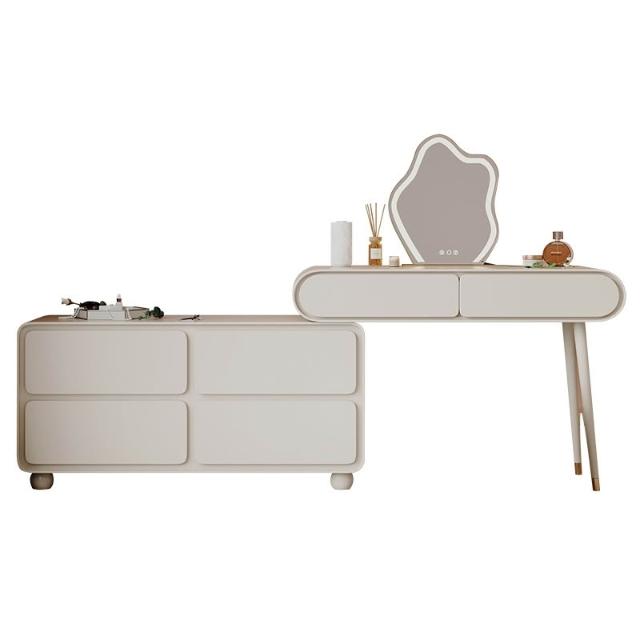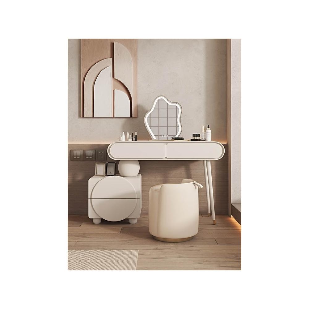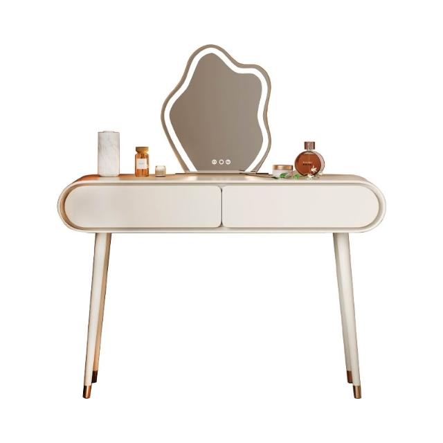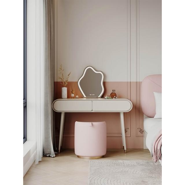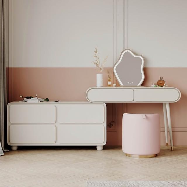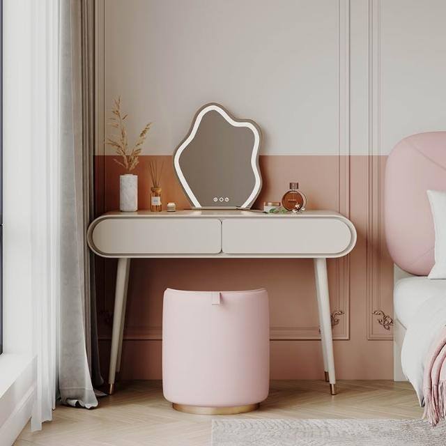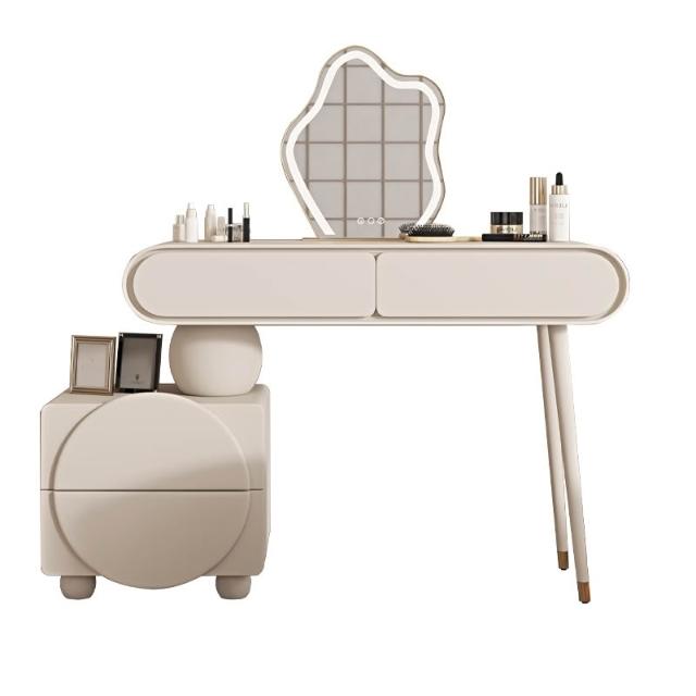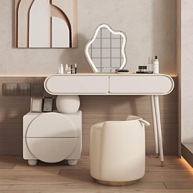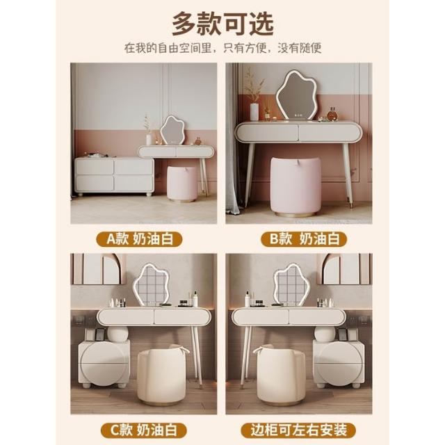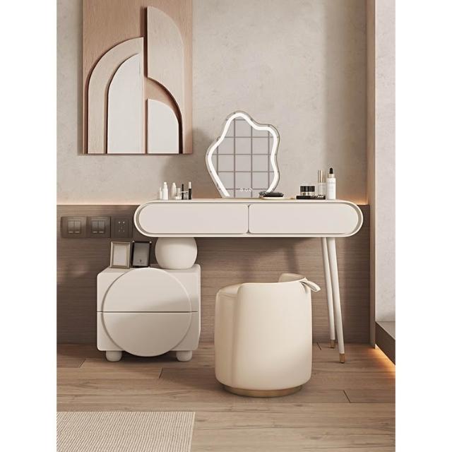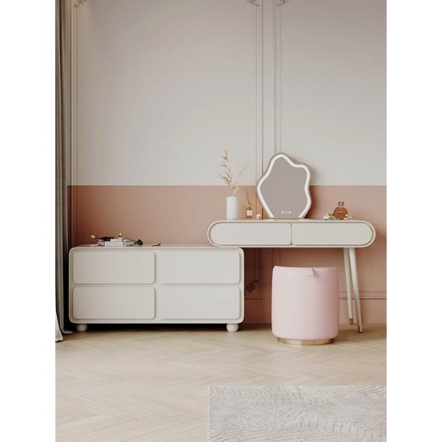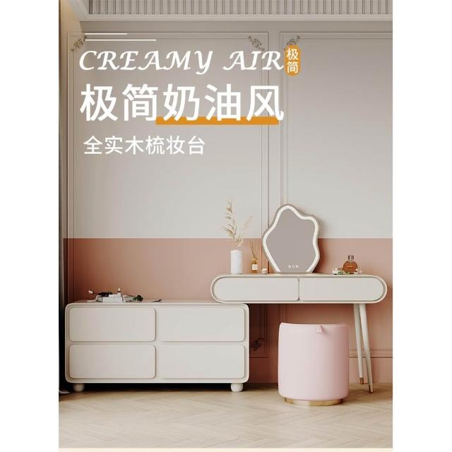 奶油風梳妝台 女生卧室化妝桌 可伸縮梳妝台 附櫃化妝台 簡約小戶型化妝桌 實木梳妝台