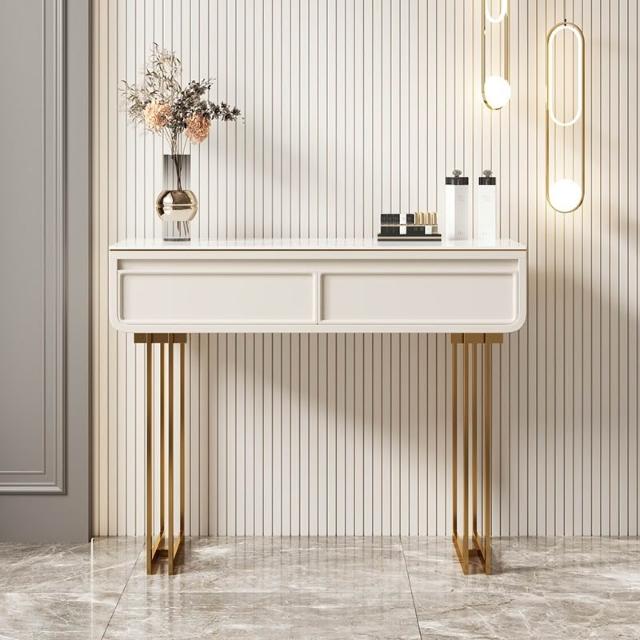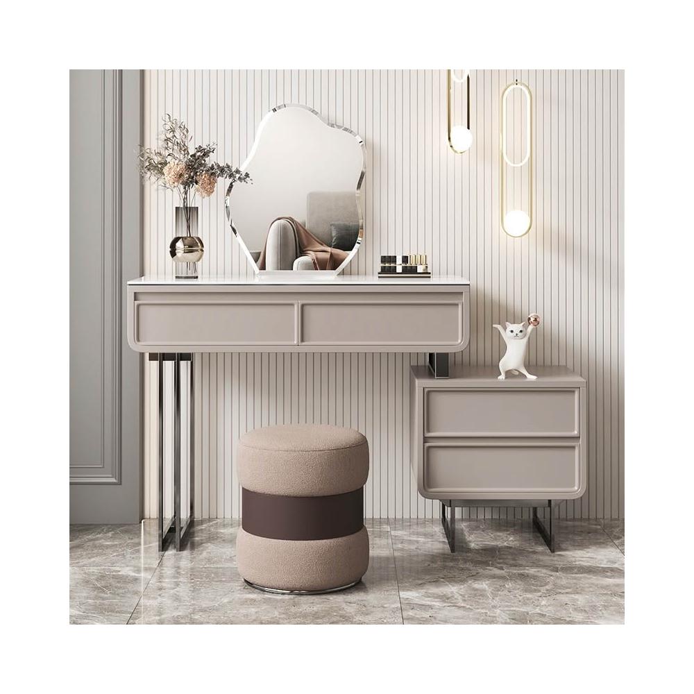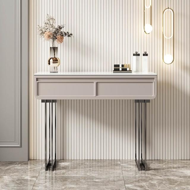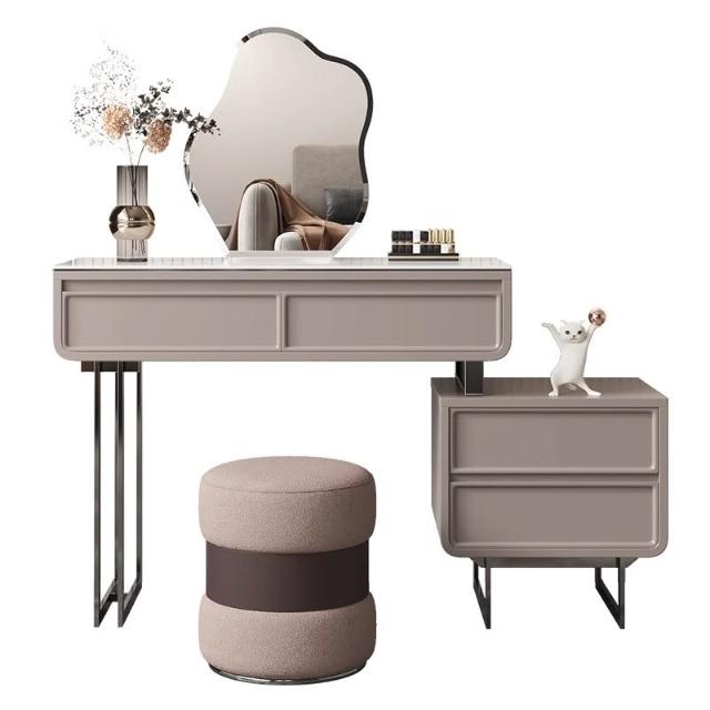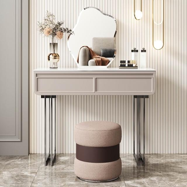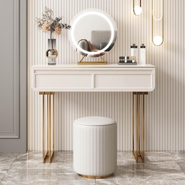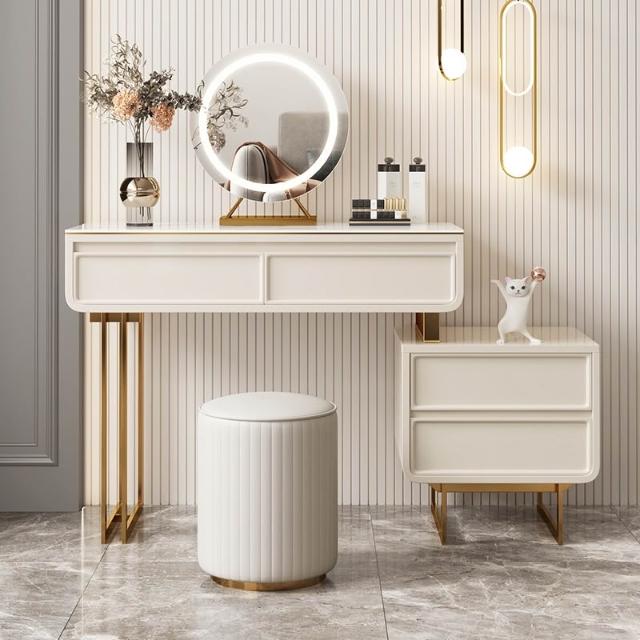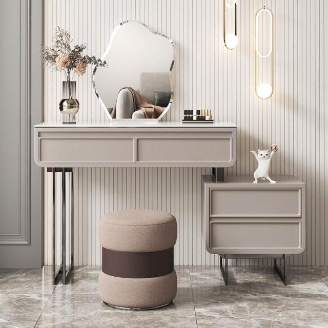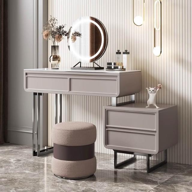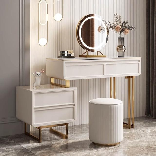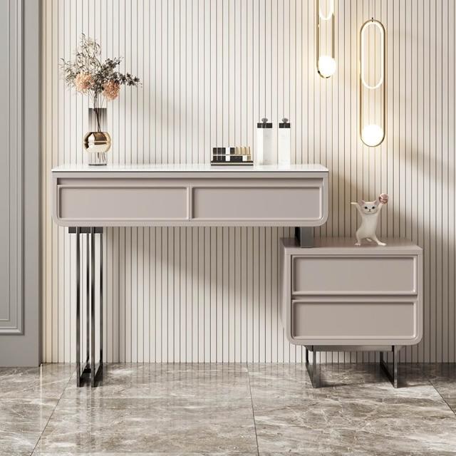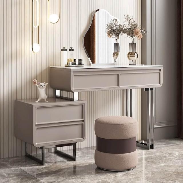 北歐簡約梳妝台 卧室化妝台 設計師化妝桌 極簡化妝桌 伸縮梳妝台 附櫃梳妝桌 岩板實木梳妝台