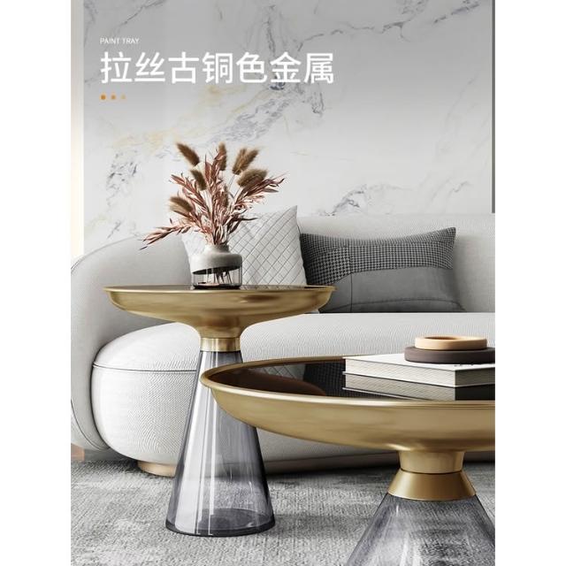 北歐設計師邊幾 茶几 沙發邊幾 茶台 陽台小茶几 圓型茶几 卧室床邊桌 金屬玻璃邊幾