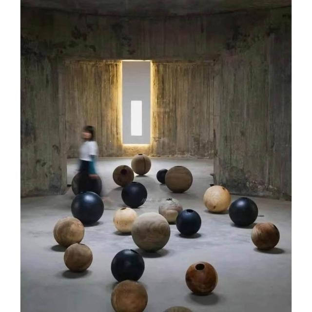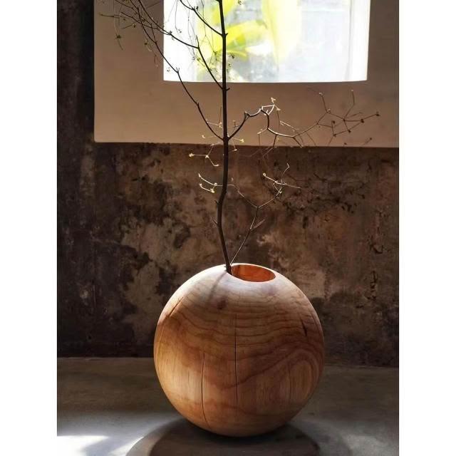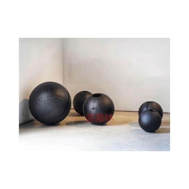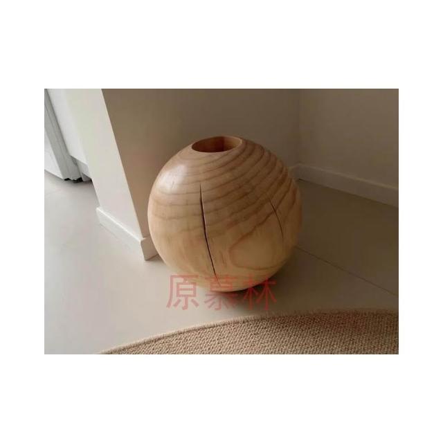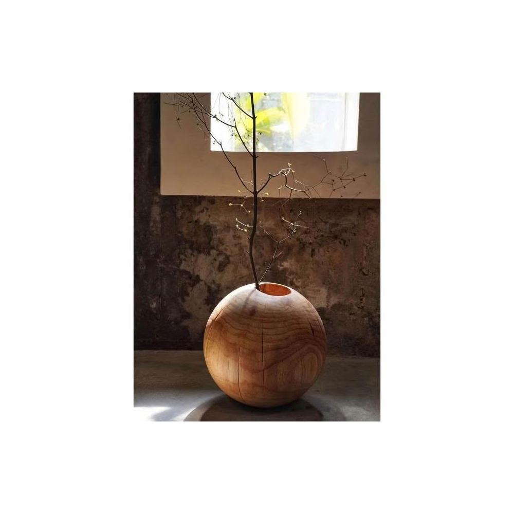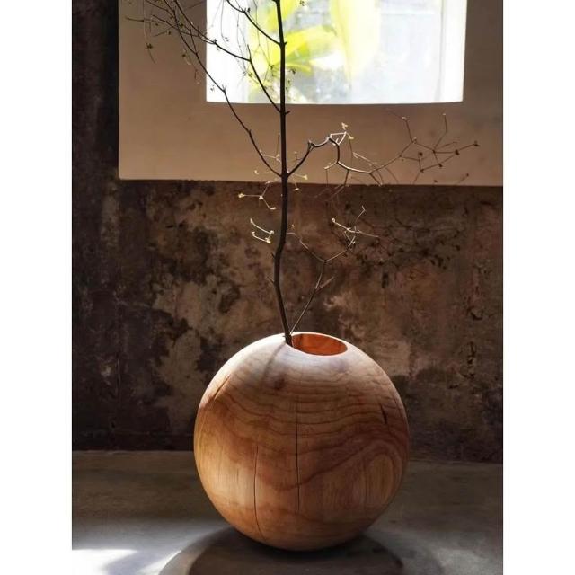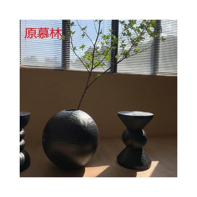 日式侘寂風花瓶 圓形花瓶 禪意花器 民宿碳化落地擺件 創意圓球形花瓶 裝飾擺件 實木花瓶