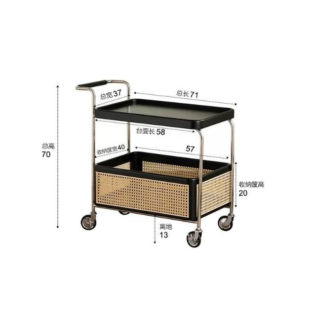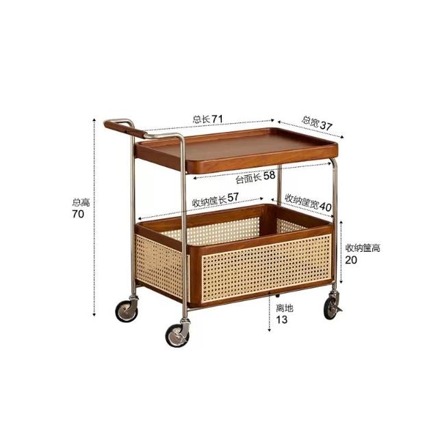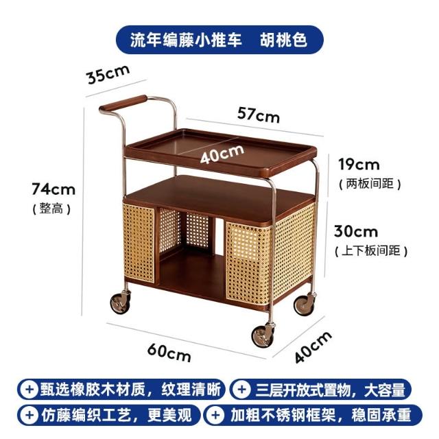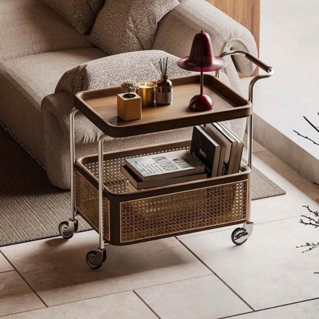 廠家直銷✨免運 中古实木边几 可移动小户型高级藤编边几 客厅复古侘寂风沙发茶几 小推车