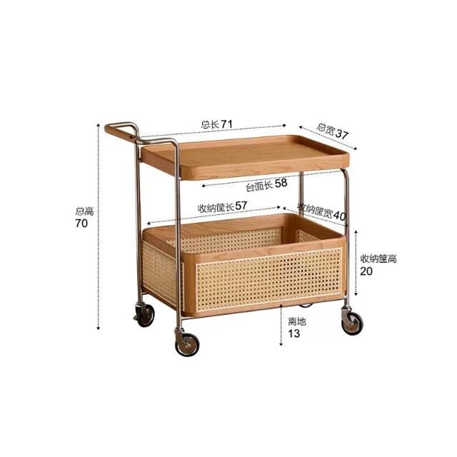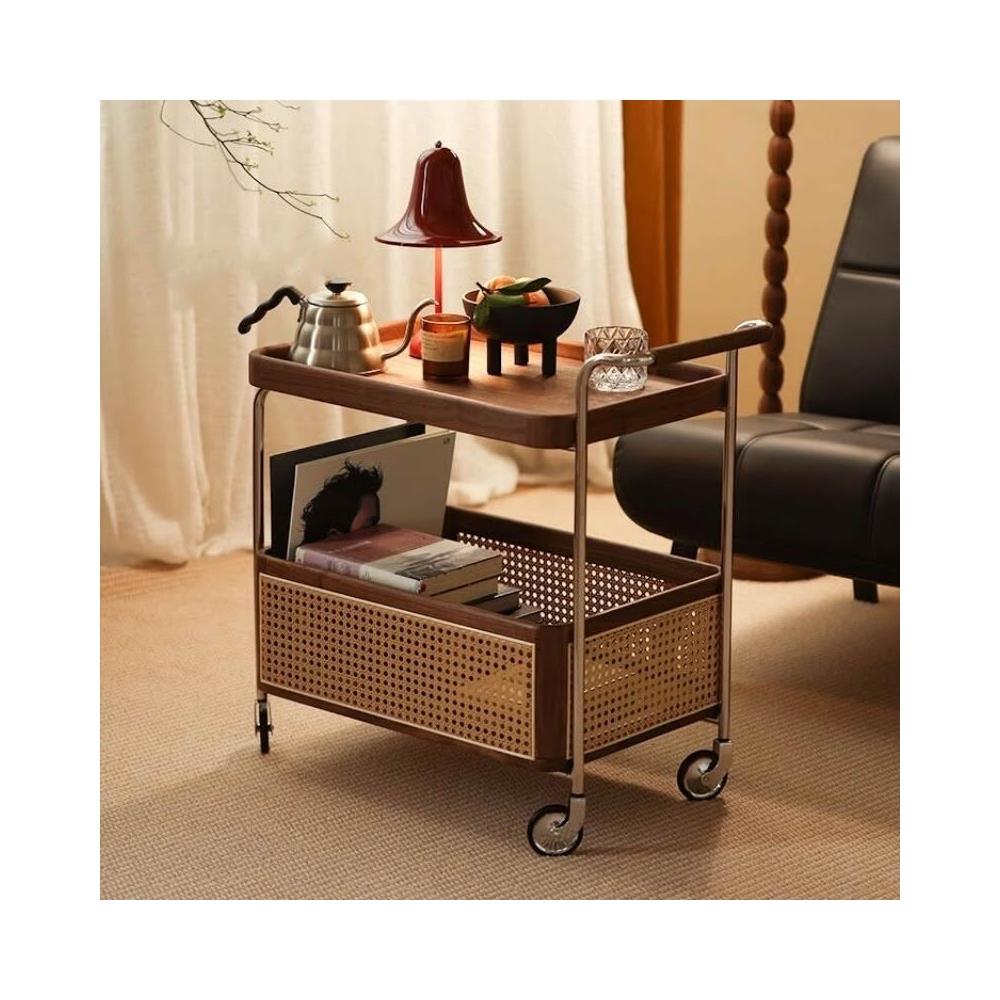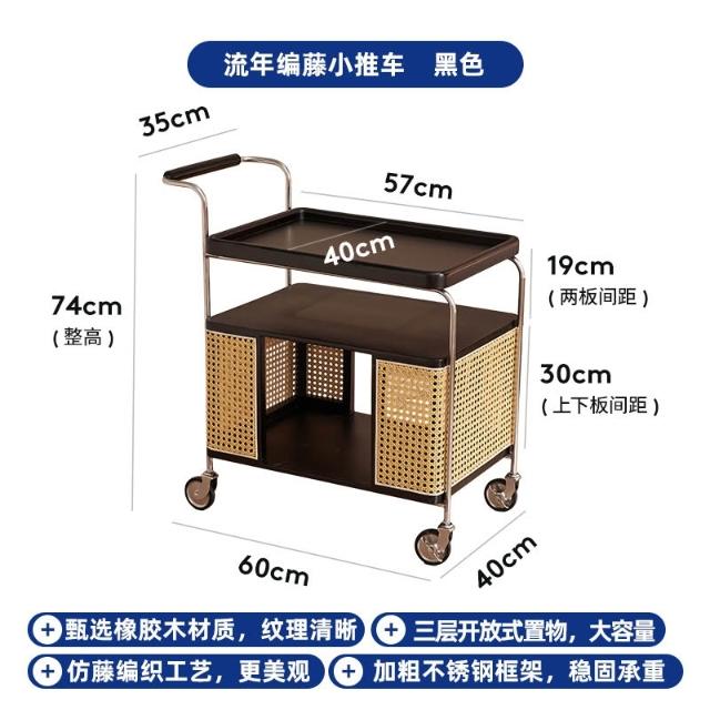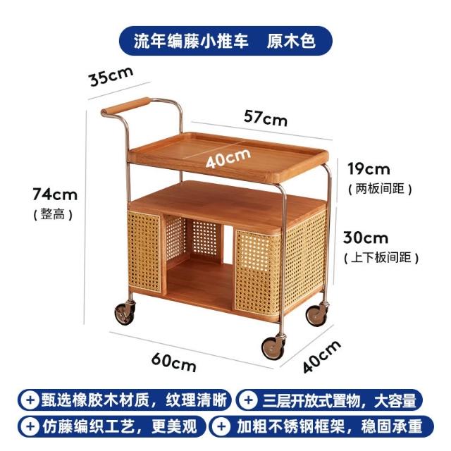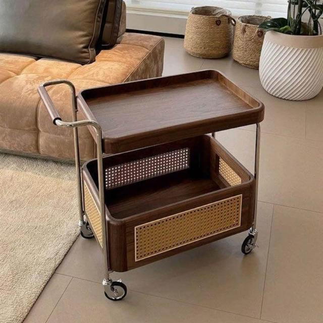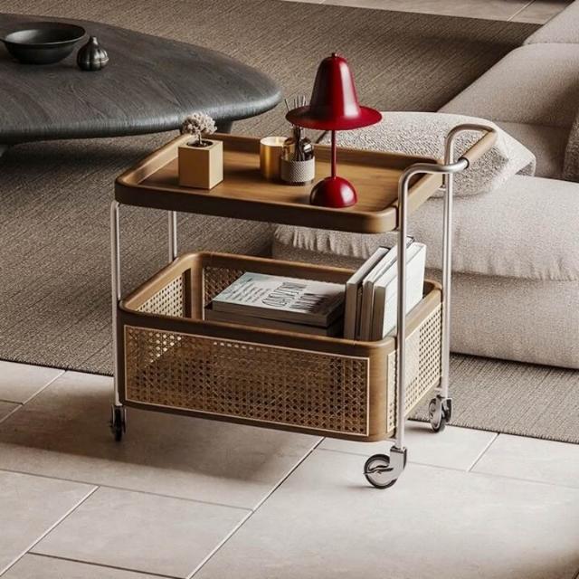 廠家直銷✨免運 中古实木边几 可移动小户型高级藤编边几 客厅复古侘寂风沙发茶几 小推车