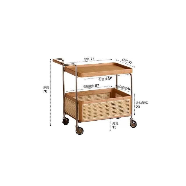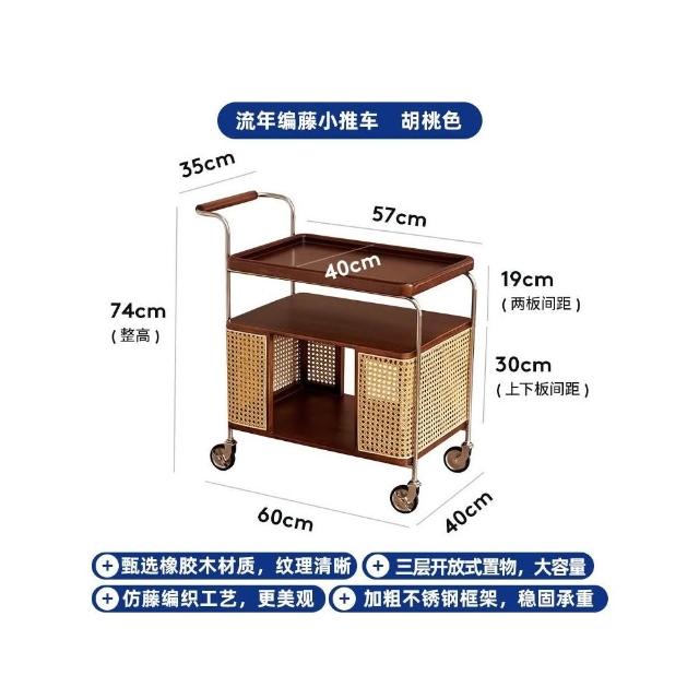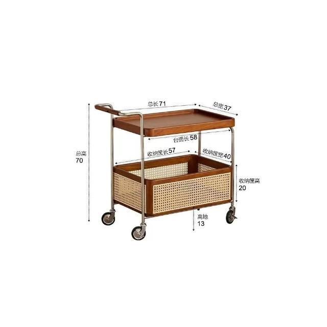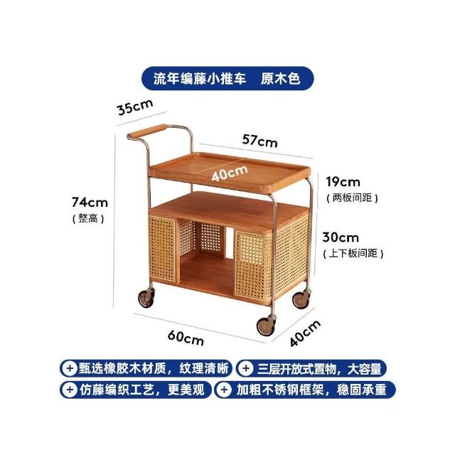 廠家直銷✨免運 中古实木边几 可移动小户型高级藤编边几 客厅复古侘寂风沙发茶几 小推车