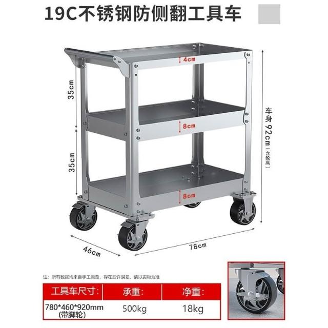 手推車置物架 工具車 不銹鋼小推車 移動工作台 三層多功能工作臺移動帶輪車間汽修維修