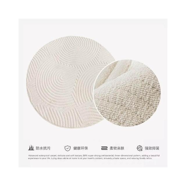 法式奶油風客廳地毯圓形高級感輕奢書房臥室床邊毯防水防汙沙髮毯