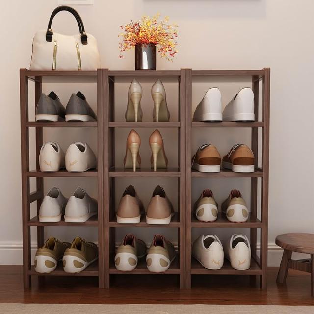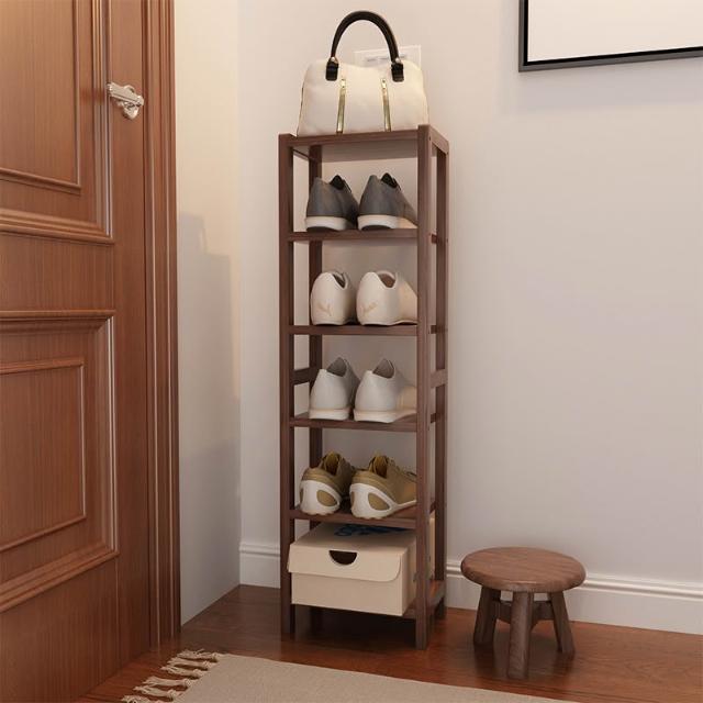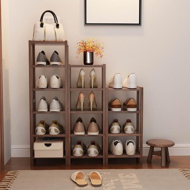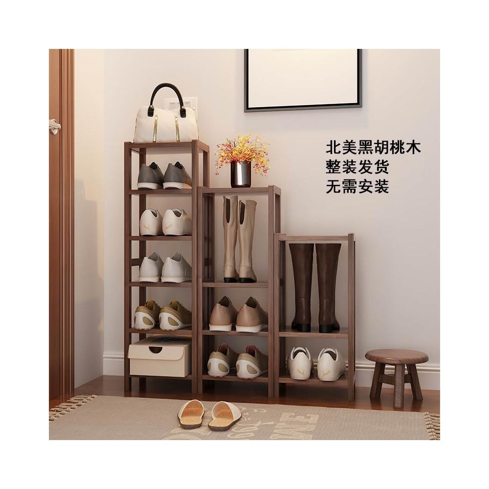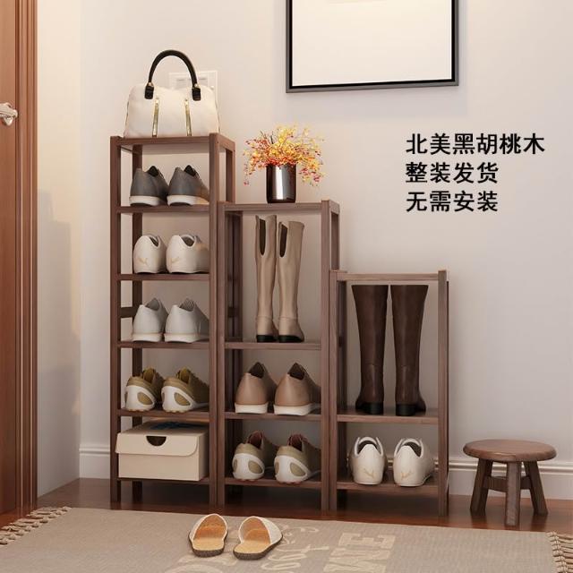 玄關置物架 實木鞋架 多層收納省空間黑胡桃木家用門口入戶轉角簡易小窄鞋櫃