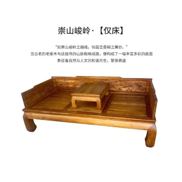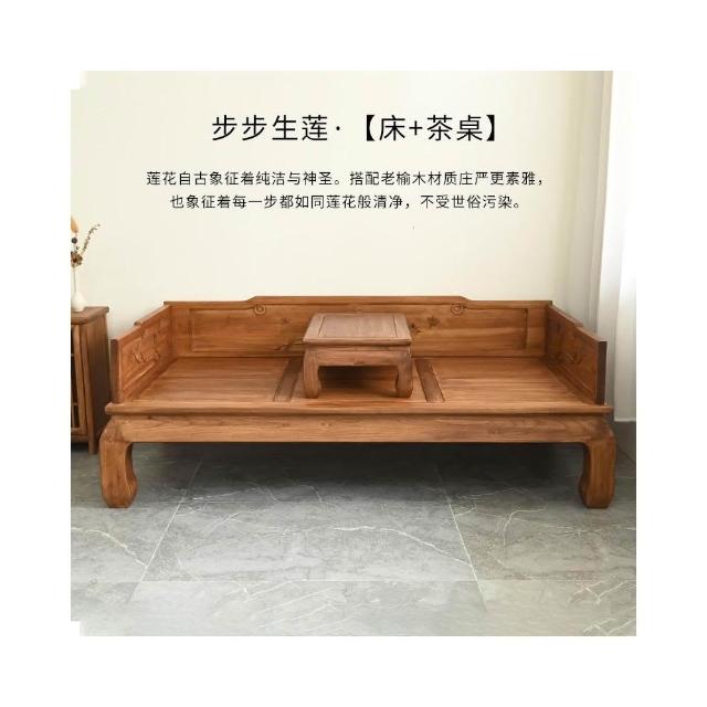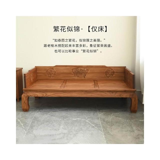 榆木羅漢床新中式客廳沙發實木臥榻雕花仿古貴妃榻禪意兩用小戶型
