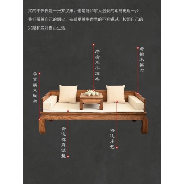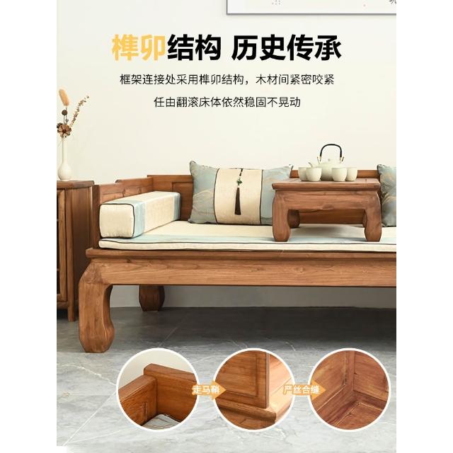 榆木羅漢床新中式客廳沙發實木臥榻雕花仿古貴妃榻禪意兩用小戶型