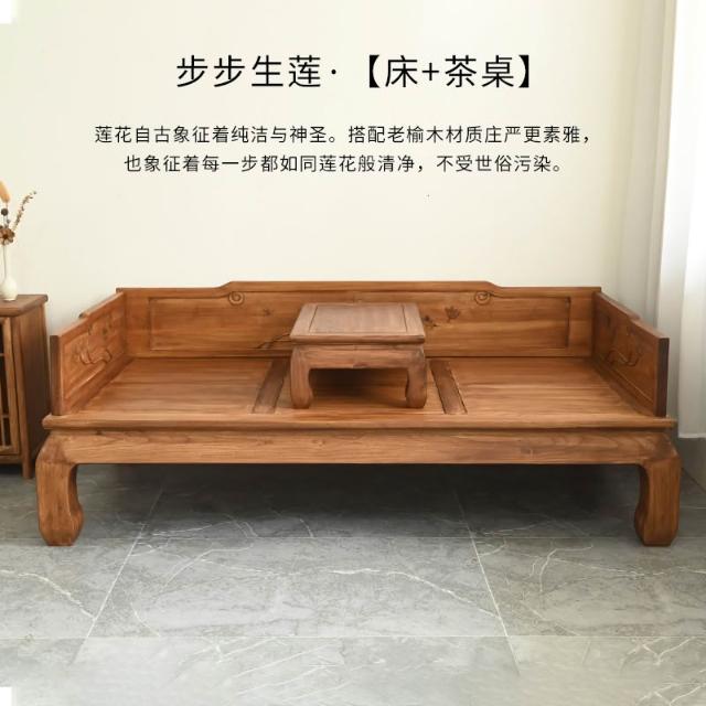 榆木羅漢床新中式客廳沙發實木臥榻雕花仿古貴妃榻禪意兩用小戶型