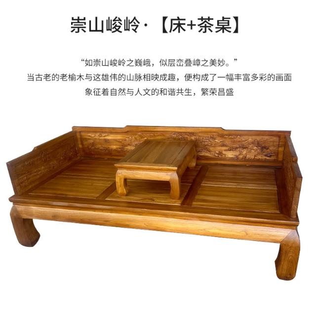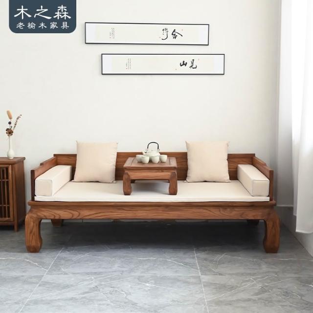 榆木羅漢床新中式客廳沙發實木臥榻雕花仿古貴妃榻禪意兩用小戶型
