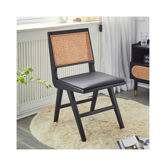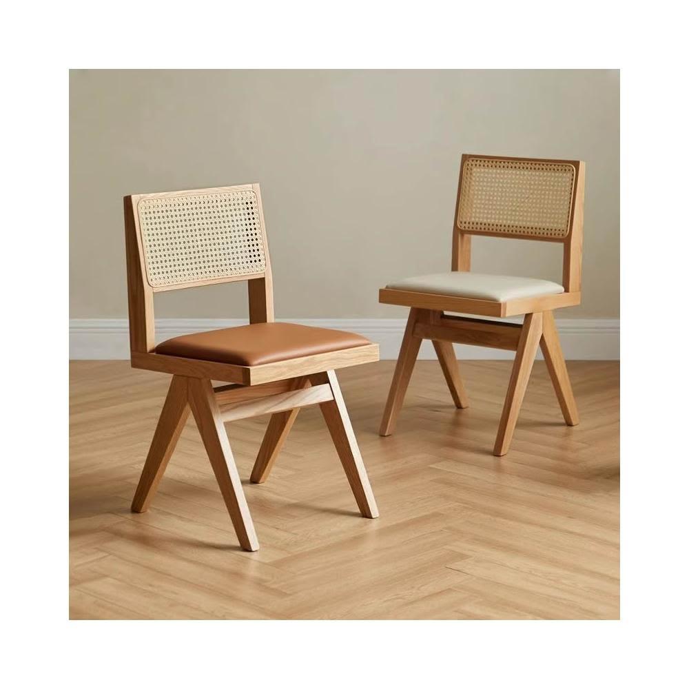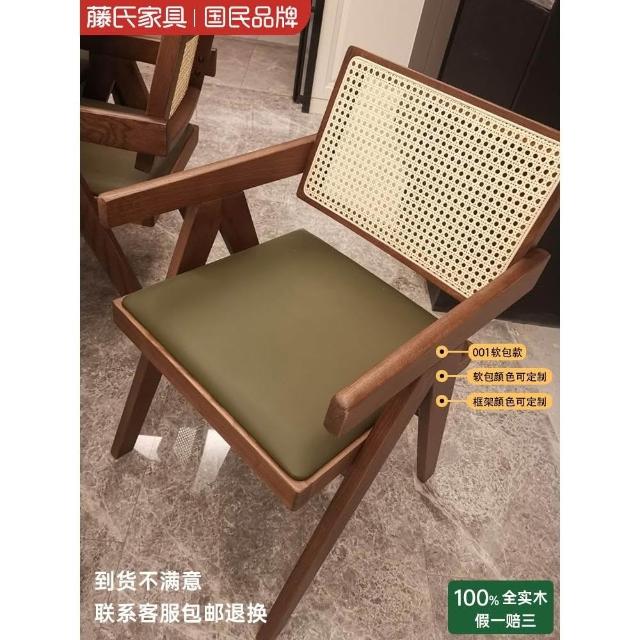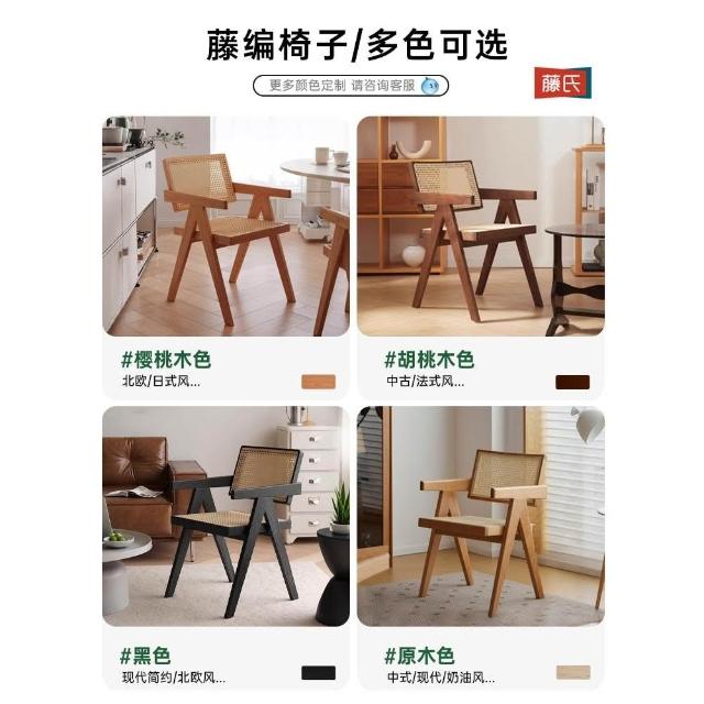 北欧藤编椅子家用阳台藤椅餐厅侘寂实木餐椅设计师原木昌迪加尔椅