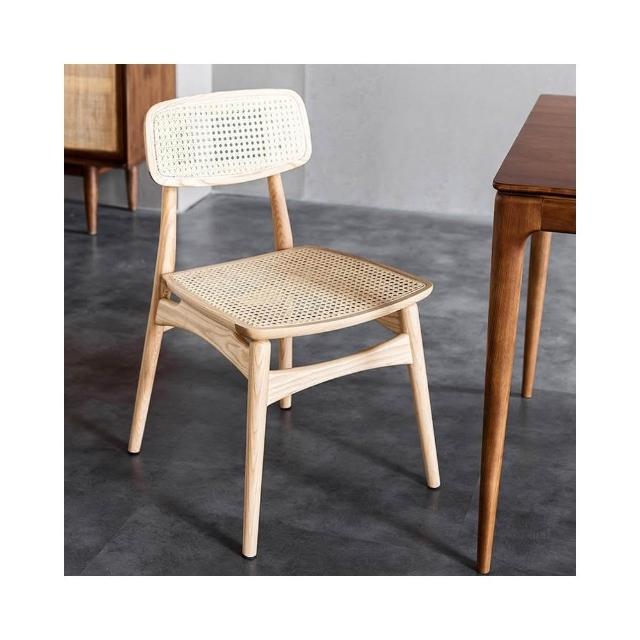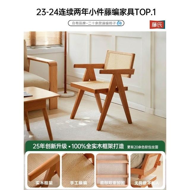 北欧藤编椅子家用阳台藤椅餐厅侘寂实木餐椅设计师原木昌迪加尔椅
