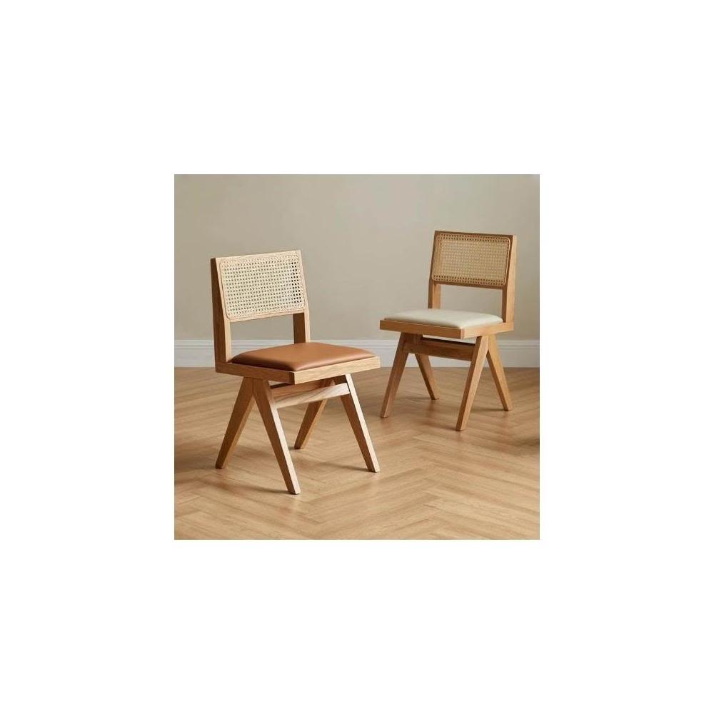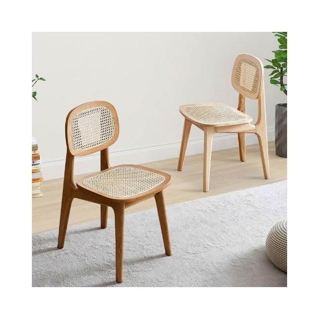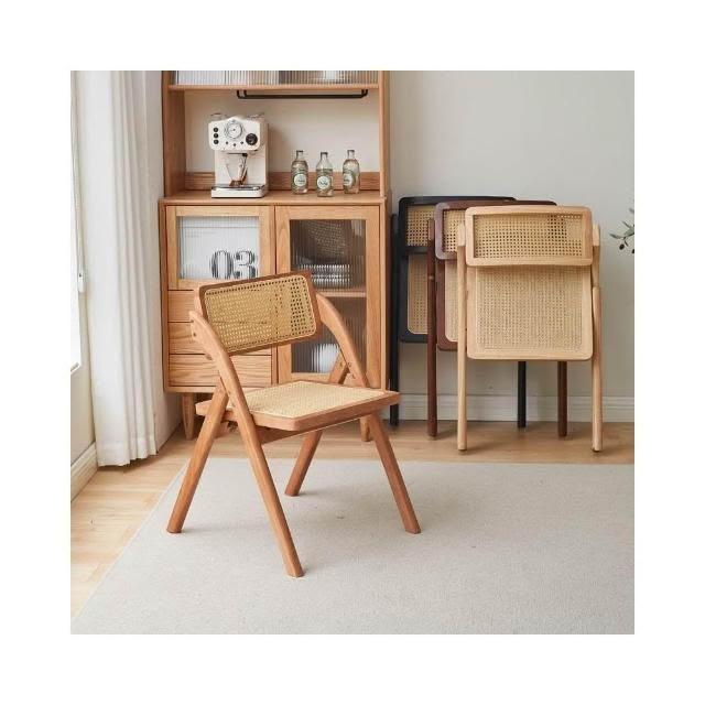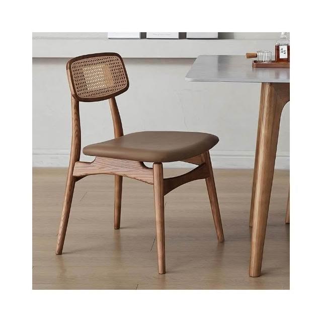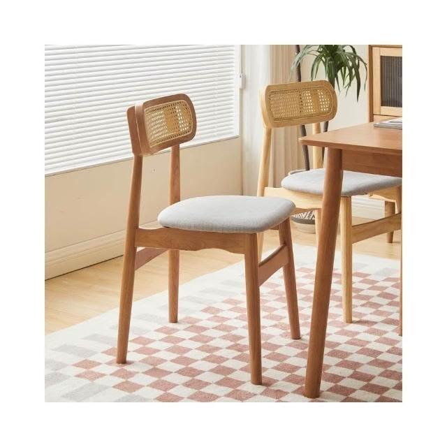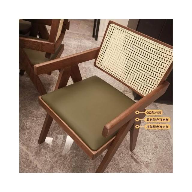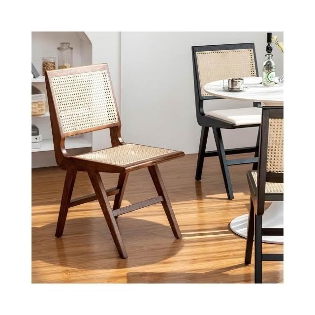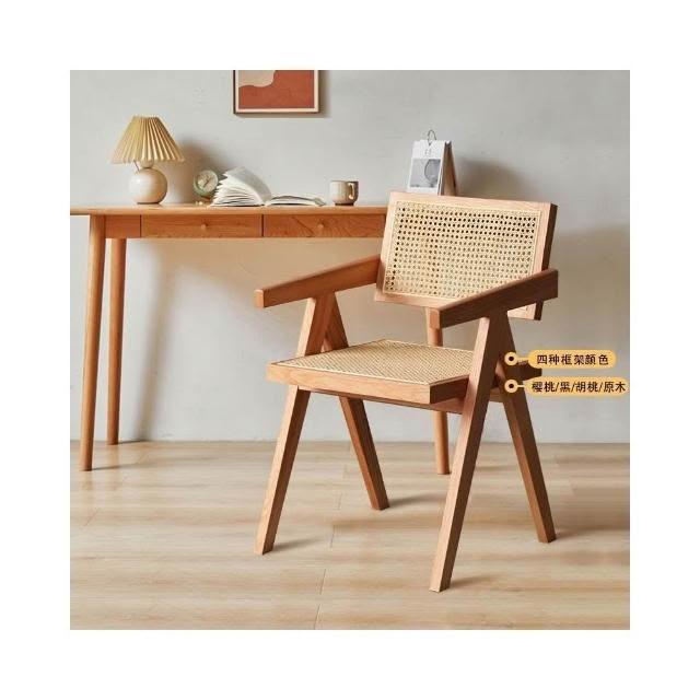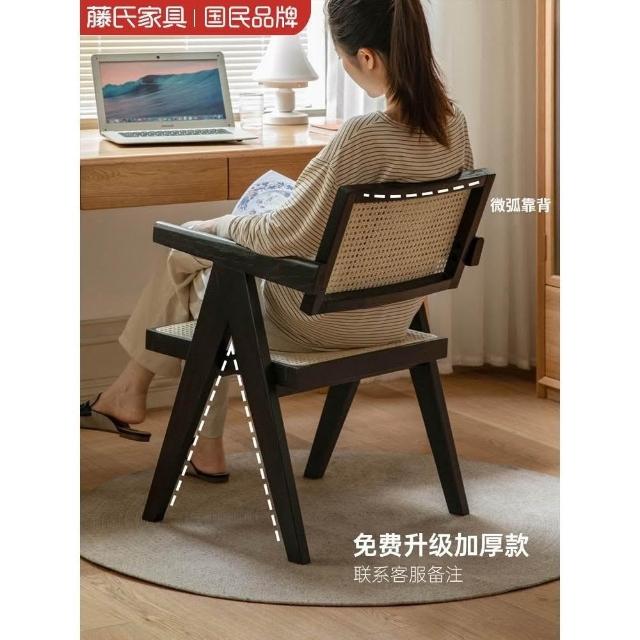 北欧藤编椅子家用阳台藤椅餐厅侘寂实木餐椅设计师原木昌迪加尔椅