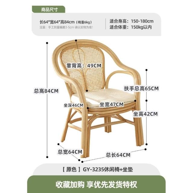 北欧藤椅家用天然真藤椅子阳台藤编老人靠背椅单人高背滕椅腾圈椅