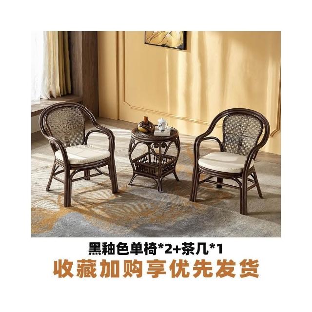 北欧藤椅家用天然真藤椅子阳台藤编老人靠背椅单人高背滕椅腾圈椅