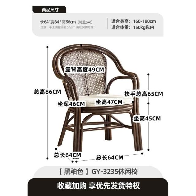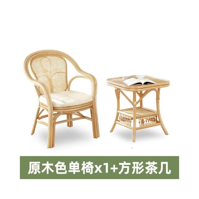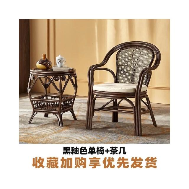 北欧藤椅家用天然真藤椅子阳台藤编老人靠背椅单人高背滕椅腾圈椅