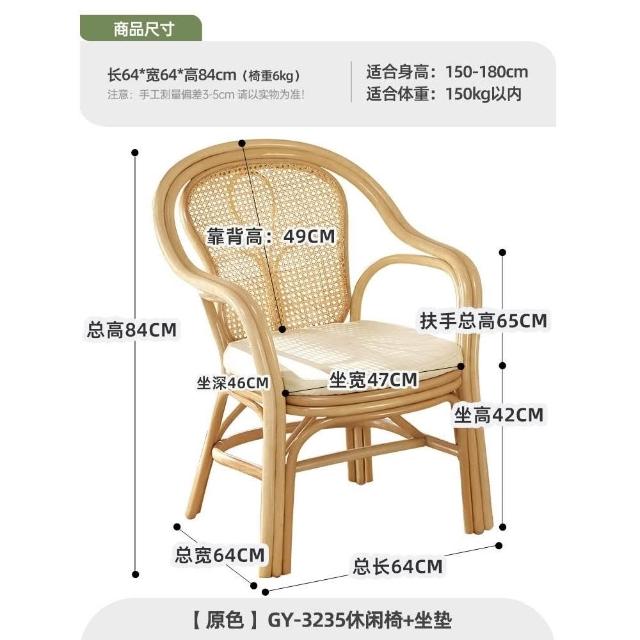 北欧藤椅家用天然真藤椅子阳台藤编老人靠背椅单人高背滕椅腾圈椅