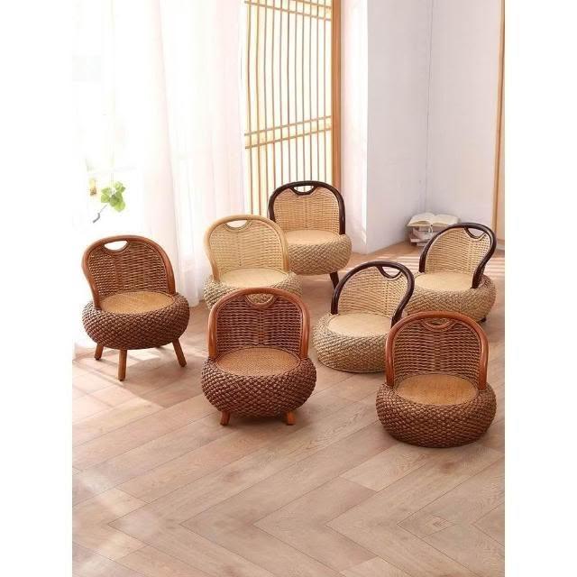 藤编小椅子家用座椅单人藤椅田园矮凳圆凳换鞋凳榻榻米阳台靠背椅