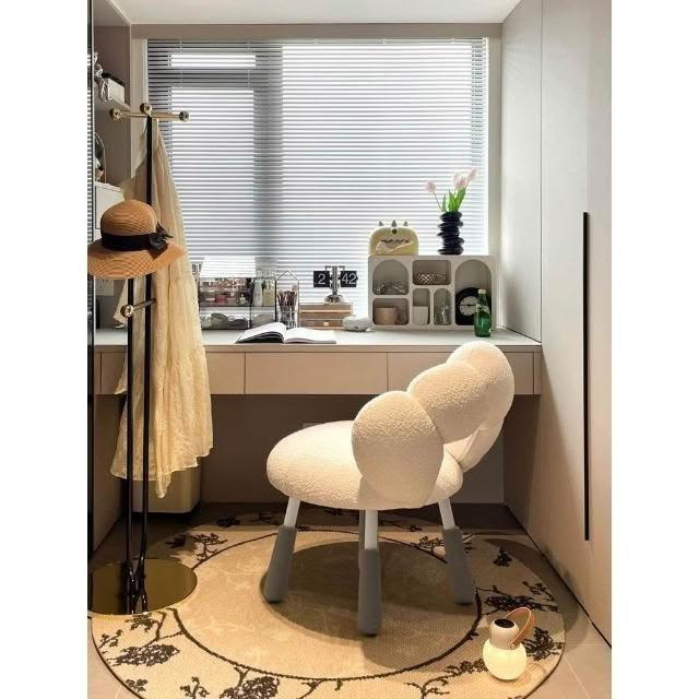 梳妝凳奶油風可旋轉化妝椅子羊羔絨小戶型臥室女生網紅書桌電腦椅