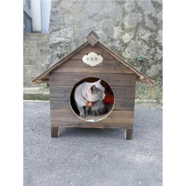 室外防雨貓窩流浪貓窩寵物貓屋貓舍貓房戶外原木寵物窩實木寵物屋
